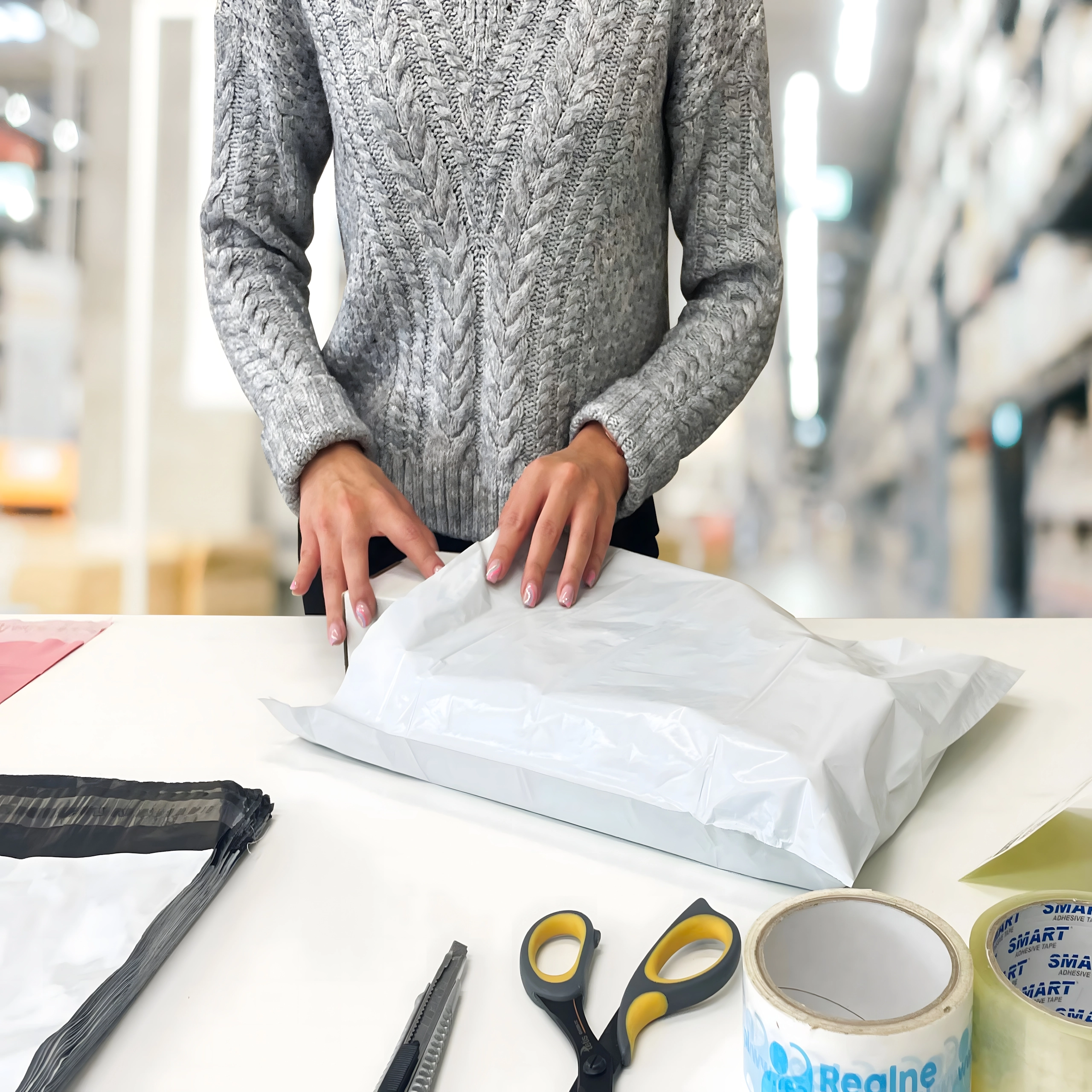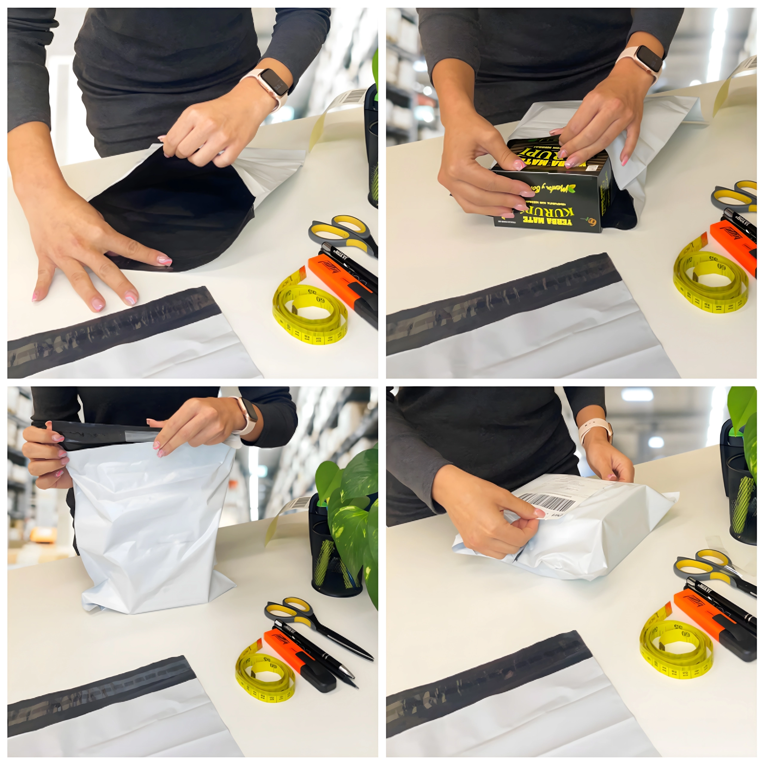 Poly mailers de înaltă calitate, dimensiune 600 × 800 mm, o alegere excelentă pentru ambalarea textilelor, accesoriilor și altor produse mai voluminoase. Banda autoadezivă peel-and-seal accelerează expedierea și oferă dovadă de manipulare împotriva deschiderii nedorite. Suprafața albă este potrivită pentru imprimare și etichete, interiorul negru protejează intimitatea.