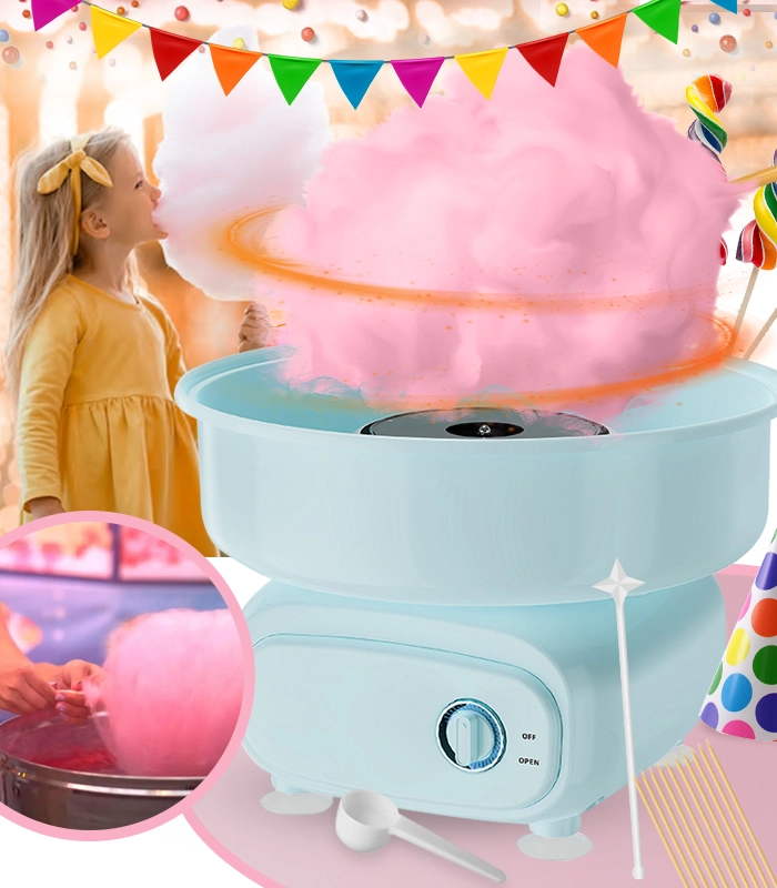 Doar adaugi zahărul, pornești și urmărești cum se formează primele fire fine. Datorită încălzirii uniforme, obții o vată mare și frumos pufoasă, chiar și din zaharuri colorate. Minunat pentru copii, nostalgie pentru adulți.