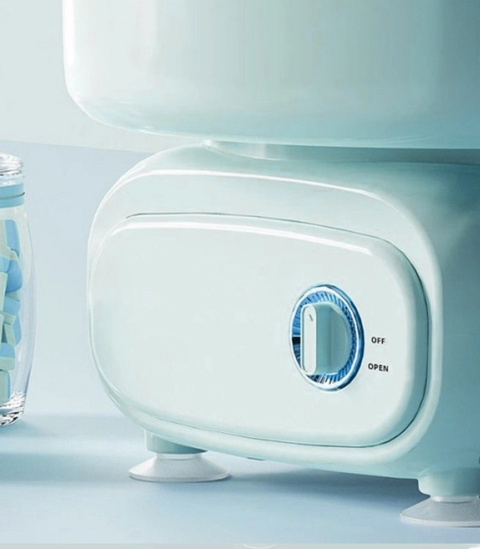 Dispozitivul se controlează cu un singur comutator, iar ventuzele din cauciuc asigură stabilitatea pe blat. Bolul antiaderent (teflon) nu reține zahărul, iar curățarea durează doar un moment.