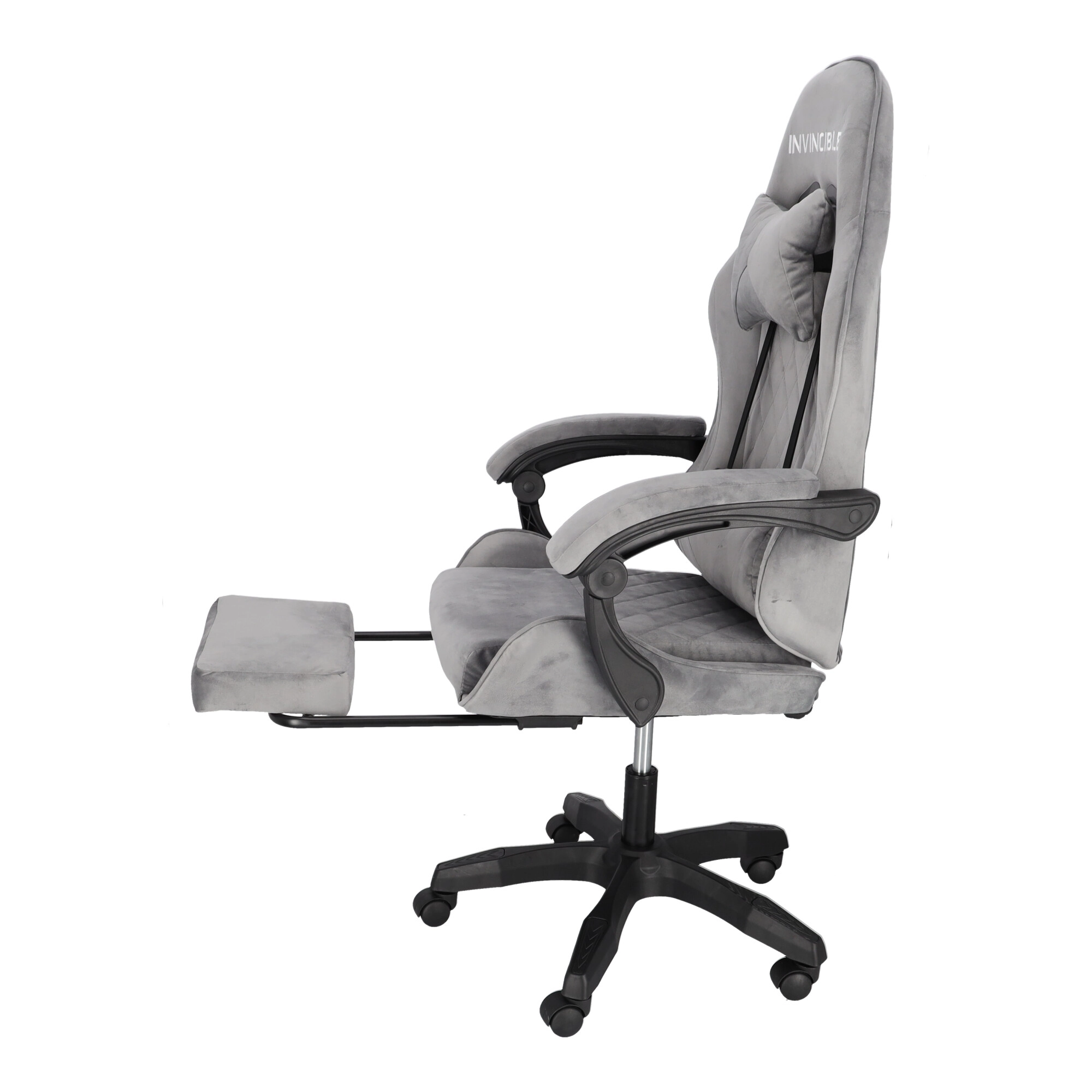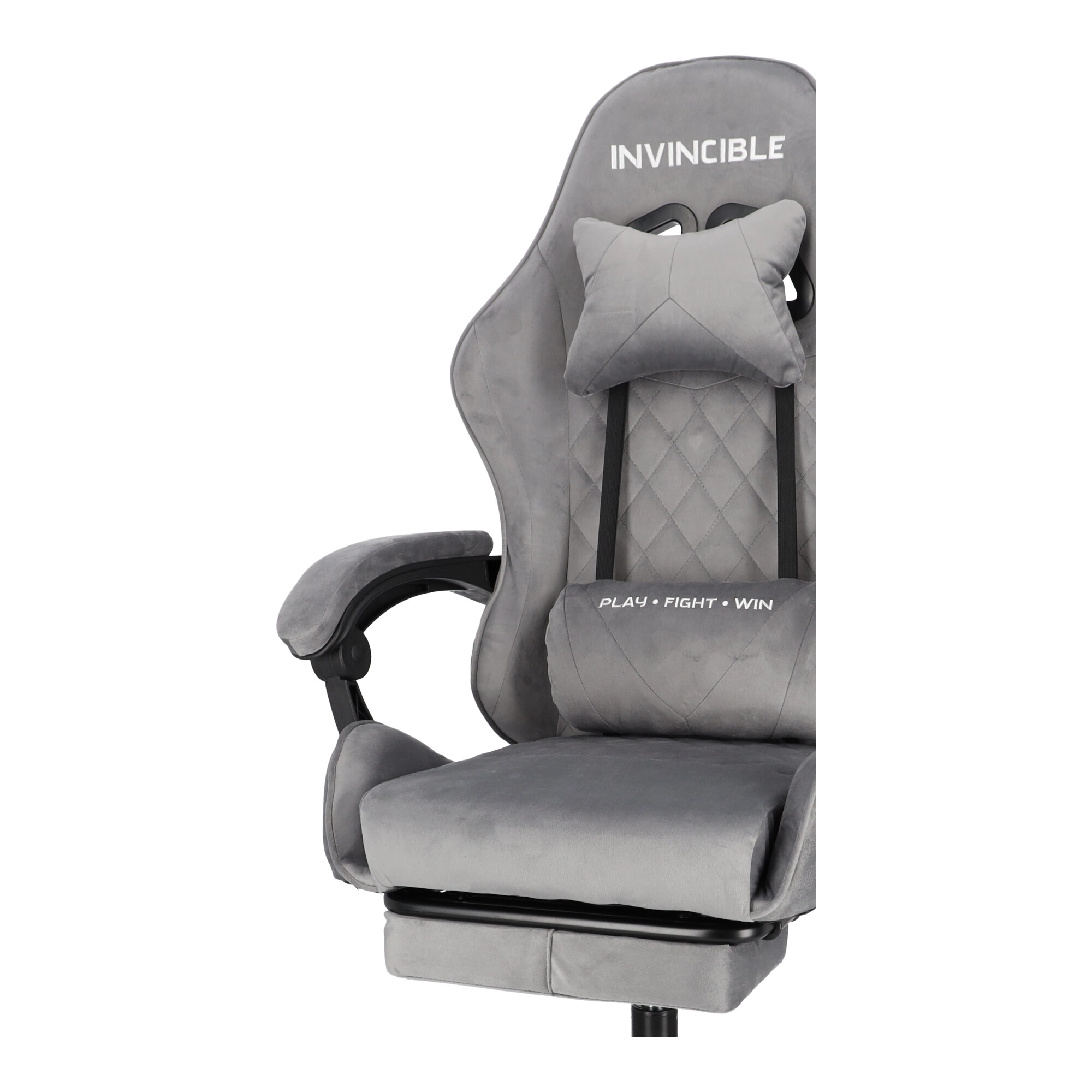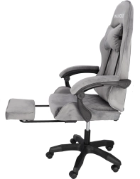 Bucură-te de confort și ergonomie într-o variantă elegantă de gri. Catifeaua moale este plăcută la atingere și oferă un aspect modern atât în colțul de gaming, cât și în biroul de acasă. Fotoliul de tip „bucket” menține corpul în ax corectă, în timp ce înălțimea reglabilă a șezutului și pernele pentru gât și zona lombară reduc oboseala spatelui la șederi îndelungate.