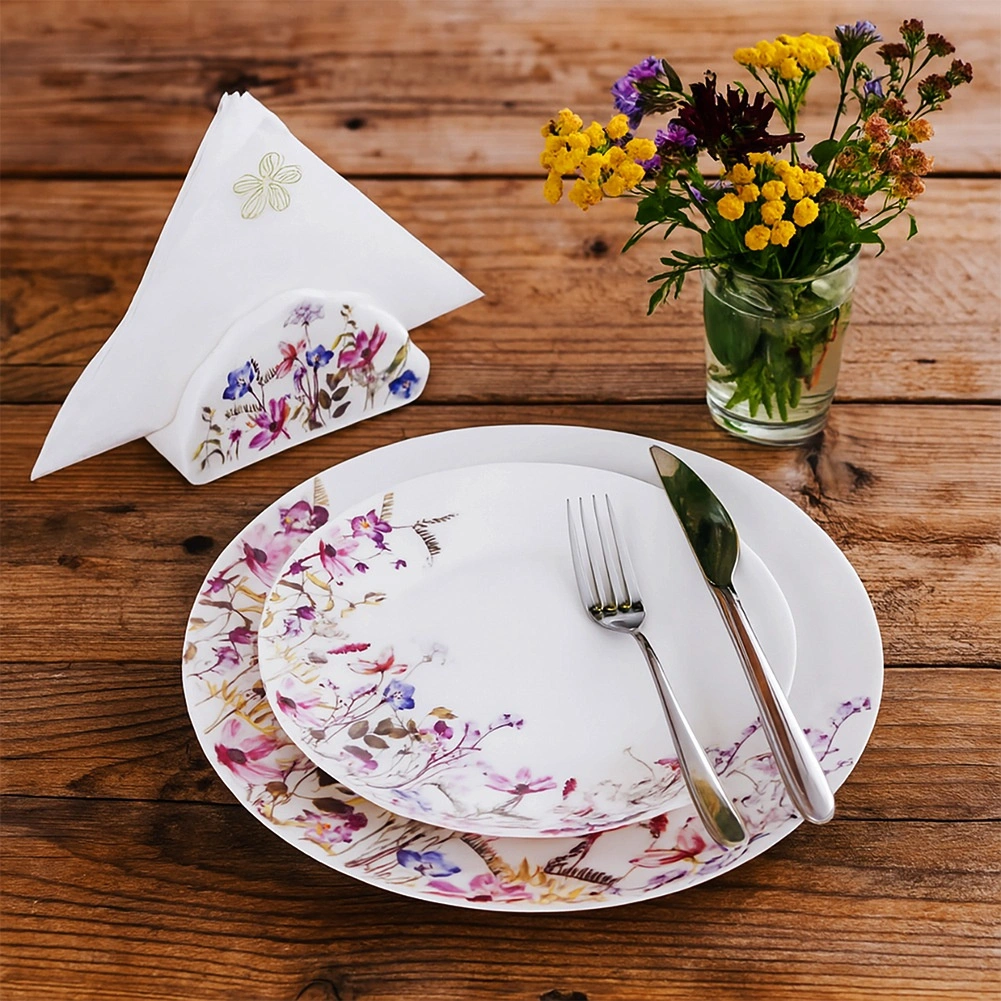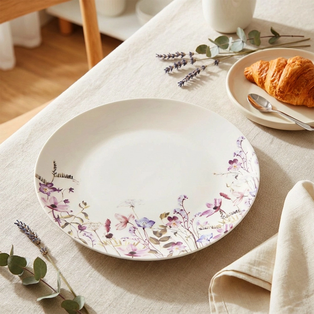 Elegantă farfurie de desert din porțelan cu diametrul de 20,5 cm, cu motiv de flori de câmp. Ideală pentru prăjituri, gustări și mic dejun. Potrivită pentru mașina de spălat vase și cuptorul cu microunde, fabricată din porțelan de calitate și se potrivește cu orice aranjament al mesei.