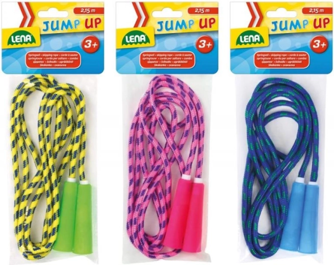 Coardă de sărit LENA pentru copii, ușoară și rezistentă, pentru distracție zilnică și antrenarea coordonării. Lungimea frânghiei 2,15 m, mânere din plastic confortabile și coardă textilă de calitate. Potrivită de la 3 ani. Disponibilă în culori diferite. Susține activitatea fizică, dezvoltarea motricității și a rezistenței.