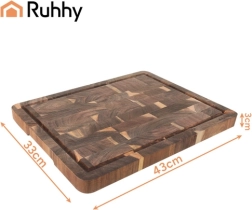 Tocător robust din lemn de salcâm, cu dimensiunile 43 × 33 × 3 cm, oferă combinația de stabilitate, rezistență la umiditate și aspect elegant. Datorită construcției end‑grain este blând cu lamele, maschează mai bine tăieturile și rezistă utilizării intense. Canalul perimetral pentru sucuri și mânerele integrate ușurează lucrul și servirea.