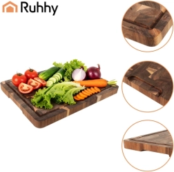 Tocătorul premium din lemn natural de salcâm este ideal pentru tăierea zilnică și pentru servirea stilată a cărnii, brânzeturilor, pâinii și gustărilor. Construcția end‑grain, cu fibre orientate pe înălțime, asigură durabilitate sporită, uzură redusă a tăișului și un aspect natural atrăgător.