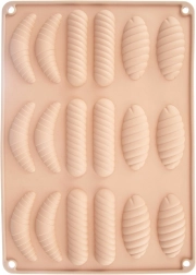 Această formă din silicon bej este ideală pentru copt biscuiți, mini prăjituri, precum și pentru praline și deserturi fără coacere. Datorită materialului elastic și antiaderent, bucățile gata preparate se scot ușor fără a le deforma, iar forma se spală apoi comod.