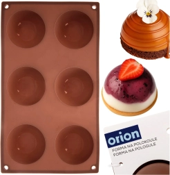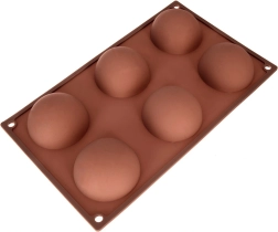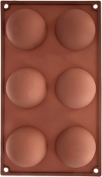 Această formă din silicon maro, cu șase cavități semisferice, este ideală pentru prepararea deserturilor la rece și a bazelor coapte. Datorită suprafeței antiaderente, deserturile se scot ușor fără a deteriora forma, iar forma nu absoarbe mirosuri sau arome.