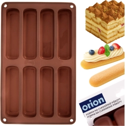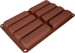 Această formă din silicon de culoare maro este ideală pentru coacerea uniformă a pișcoturilor alungite, cu formă și mărime constante. Datorită materialului flexibil, bucățile finite se scot ușor, iar forma se întreține simplu. Potrivită pentru tiramisu, deserturi la pahar și biscuiți ușori din aluat de pișcot.