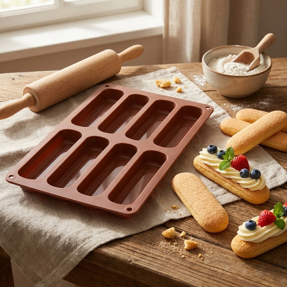 Forma are opt cavități alungite, datorită cărora pregătești pișcoturi uniforme, ideale pentru tiramisu și deserturi la pahar.