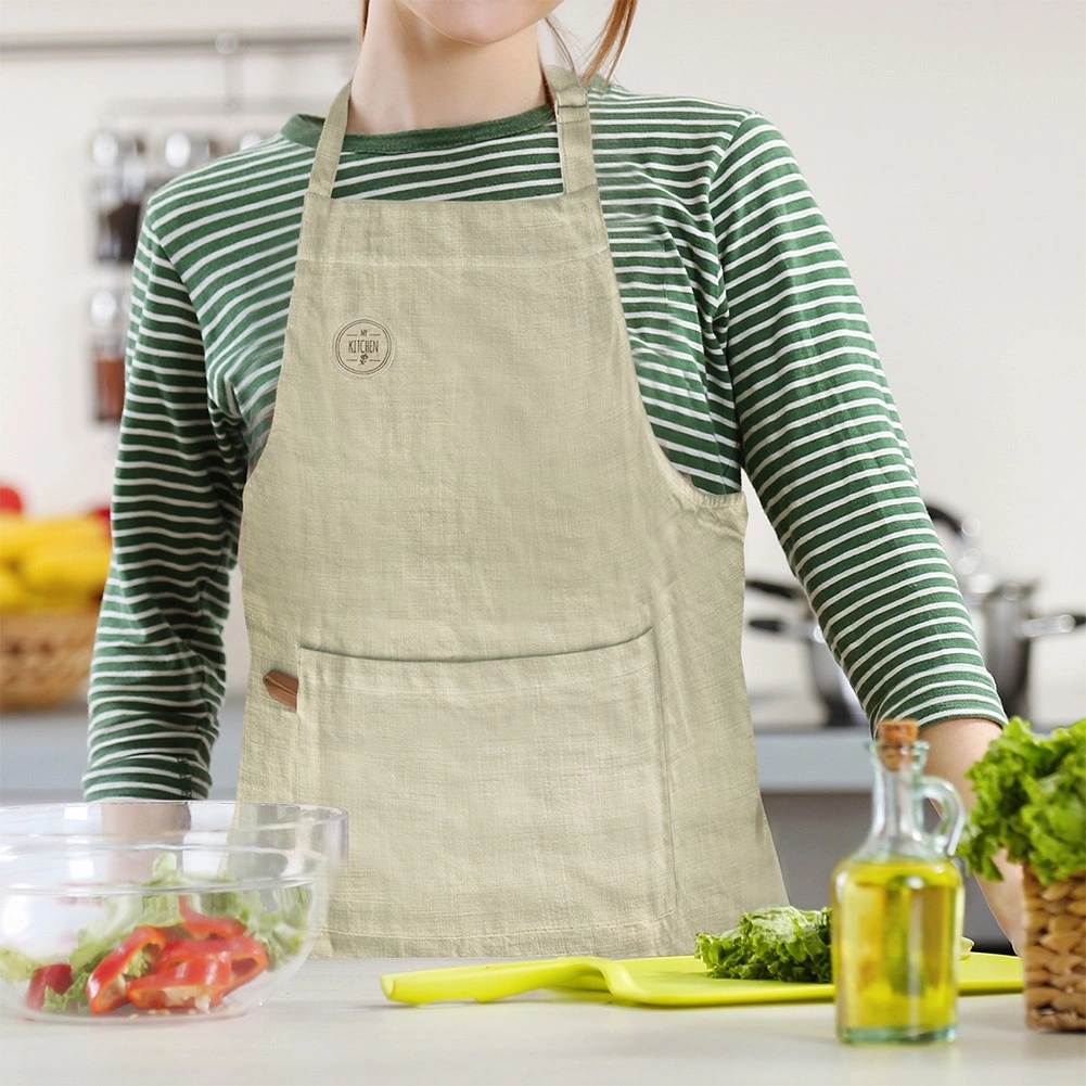 Breteaua reglabilă la gât cu cataramă şi şnururile lungi de legare în talie asigură o potrivire excelentă pentru orice siluetă. Buzunarul frontal mare păstrează la îndemână lingurile de gătit, prosopul, condimentele sau bileţelul cu reţeta – ideal pentru bucătarii de acasă, pasionaţii de grătar sau pentru lucru creativ în atelier.