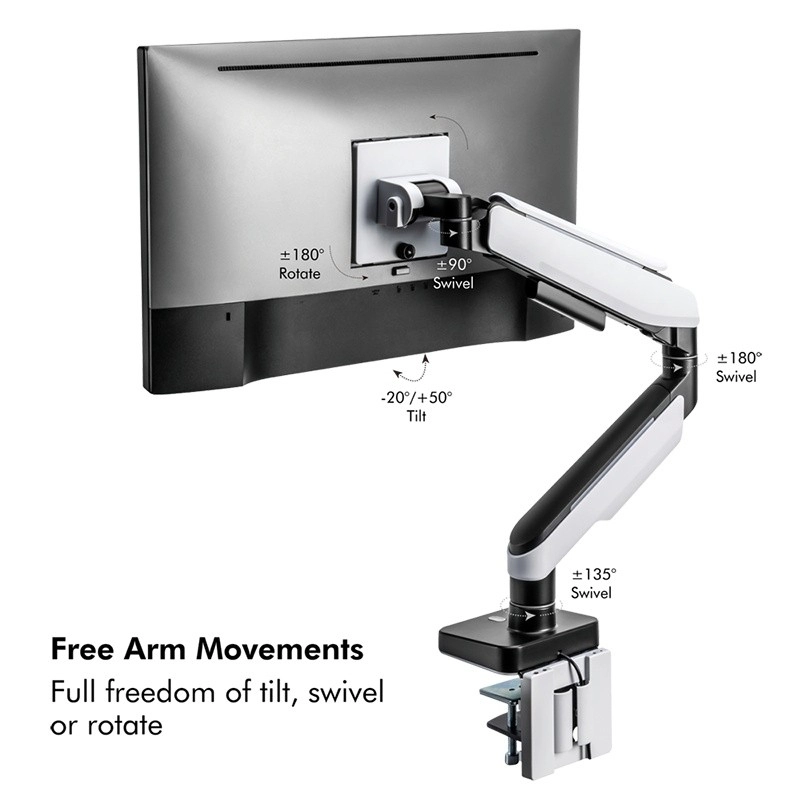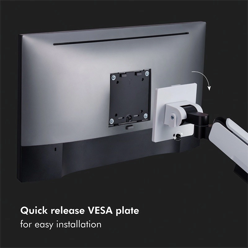 Montajul pe blat este rapid și stabil, astfel încât obții mai mult spațiu pentru periferice și accesorii. Construcția este dimensionată până la 20 kg, susținând fără probleme monitoarele moderne ultrawide și curbate din gama de dimensiuni compatibile.