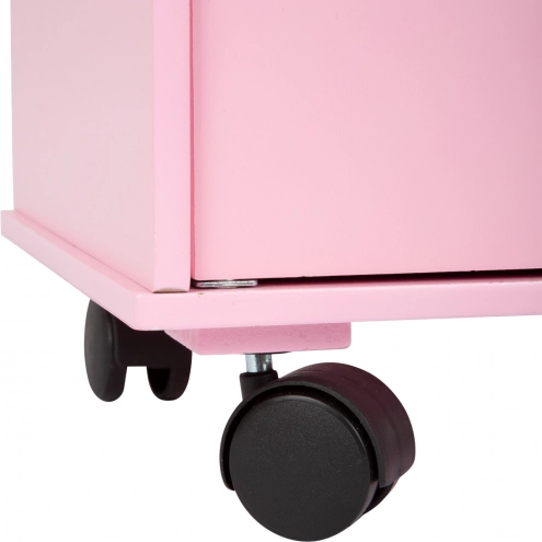 Roțile pivotante permit deplasarea lină și sigură a dulăpiorului în camera copilului sau în zona de joacă.