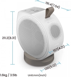- Portabilitate și operare simplă – carcasă compactă cu mâner, funcționare silențioasă 26 dB, butoane intuitive.