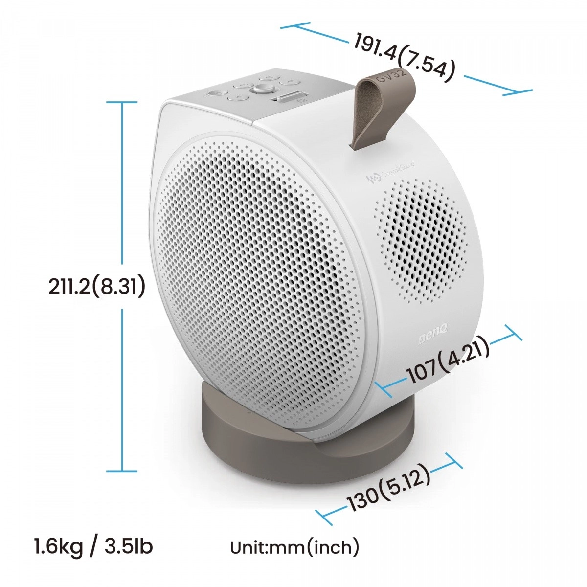 BenQ GV32 este un proiector stilat și portabil, care combină imaginea clară Full HD (1920 × 1080) cu sunetul 2.1 puternic de 18 W. Datorită tehnologiei DLP și sursei de lumină LED, oferă culori stabile, contrast ridicat 100.000:1 și până la 30.000 de ore de funcționare în modul ECO.