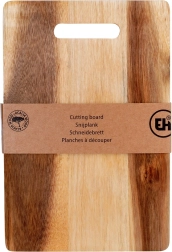 Oferă-i bucătăriei tale un tocător de calitate din lemn de salcâm, remarcabil prin duritate, rezistență și frumoasa textură naturală. Dimensiunile de 30 × 20 cm și grosimea de 1 cm asigură o suprafață stabilă și confortabilă pentru tăierea cărnii, legumelor, fructelor sau pâinii. Mânerul integrat facilitează transportul și permite agățarea.