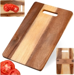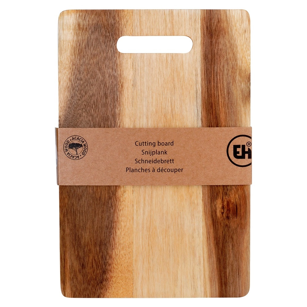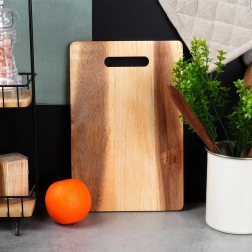 Tocător practic și stilat din lemn de salcâm, cu dimensiunile 30 × 20 cm și grosime de 1 cm, ideal pentru tăierea zilnică și servire. Oferă o suprafață solidă și rezistentă, rezistență naturală la umiditate și mâner ergonomic pentru transport facil. Excelent pentru uz în bucătărie și pentru servirea elegantă a brânzeturilor, mezelurilor și gustărilor.