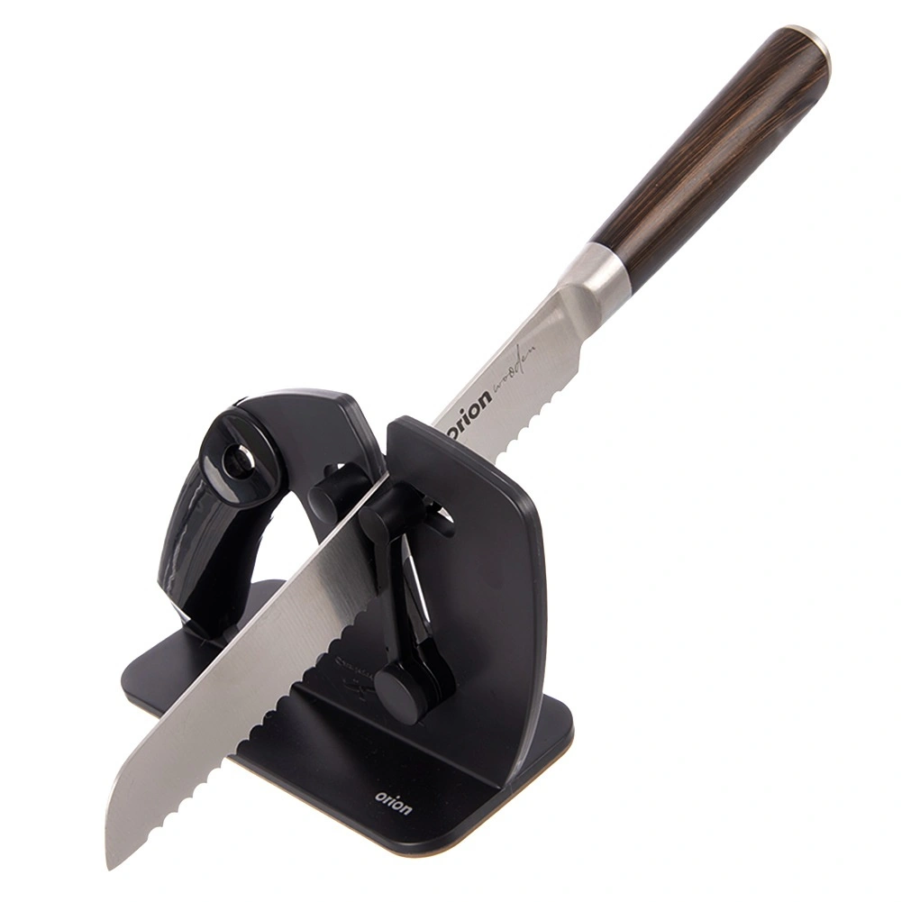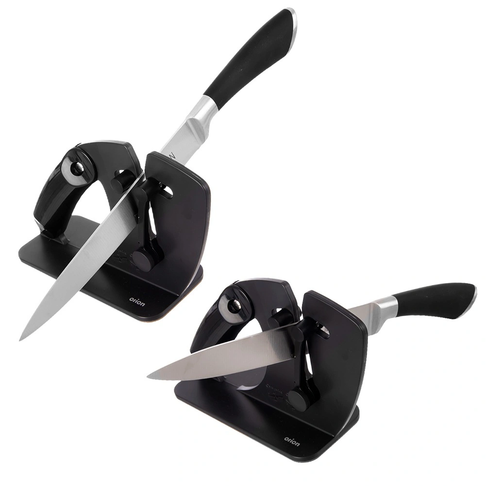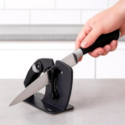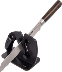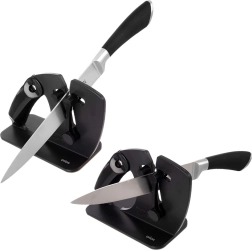 Mecanismul cu arc se adaptează singur lamei și menține unghiul corect pentru o ascuțire consecventă și delicată a cuțitelor netede și a celor cu dinți.