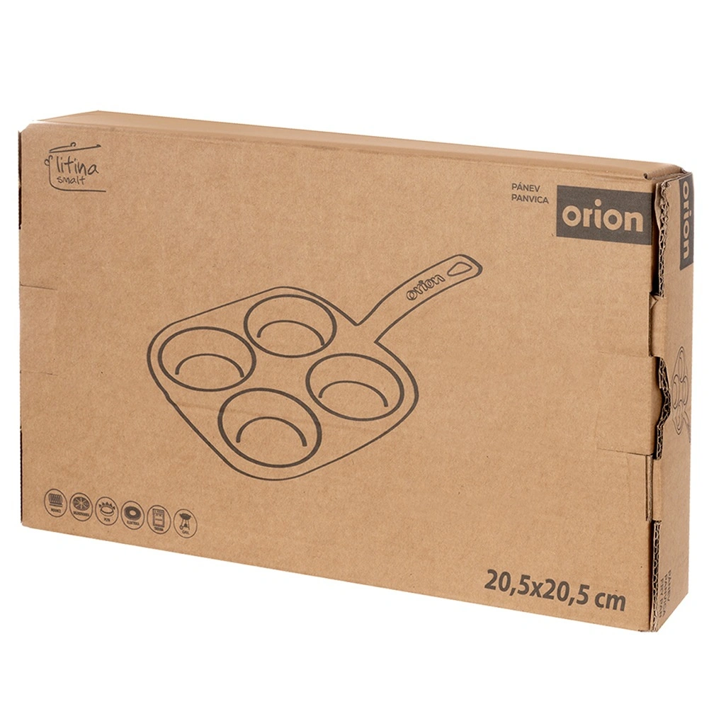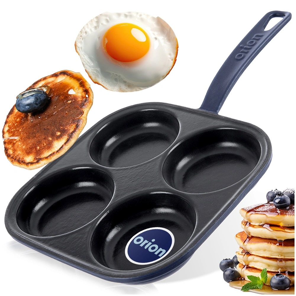 Tigaie pătrată practică din fontă, cu 4 forme rotunde (Ø 9 cm) pentru ouă sau clătite perfect formate. Suprafața emailată ușurează prăjirea și curățarea, iar fonta distribuie uniform căldura și o reține mult timp. Potrivită pentru gaz, electric, ceramic, inducție și cuptor, rezistentă la temperaturi înalte și compatibilă cu mașina de spălat vase.