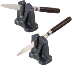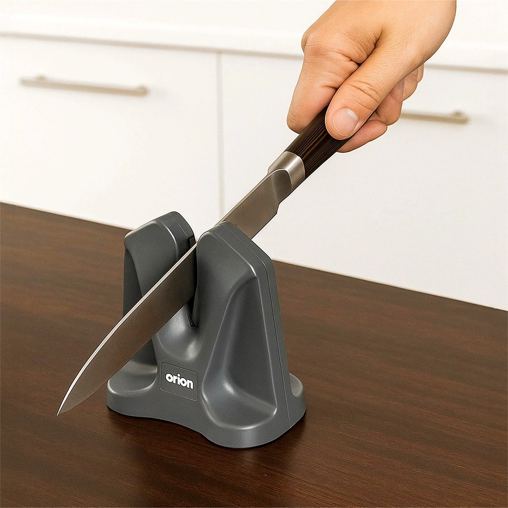 Ascuțitorul practic 2‑în‑1 este conceput pentru întreținerea zilnică a cuțitelor de bucătărie. Permite ascuțirea ușoară și blândă a lamelor netede clasice, cuțitelor pentru pâine și a foarfecelor. Unghiul de ascuțire ghidat automat ajută la obținerea unor rezultate consecvente fără necesitatea reglajelor sau a abilităților speciale.