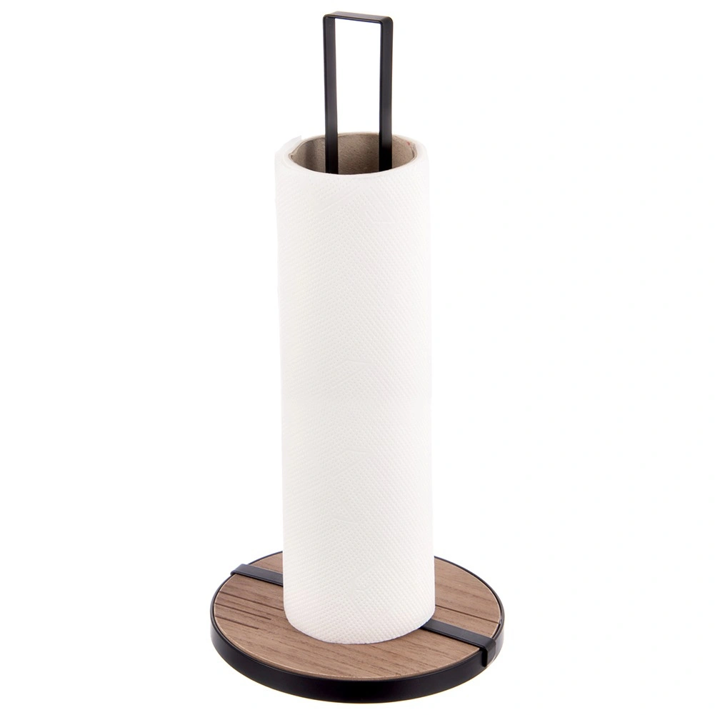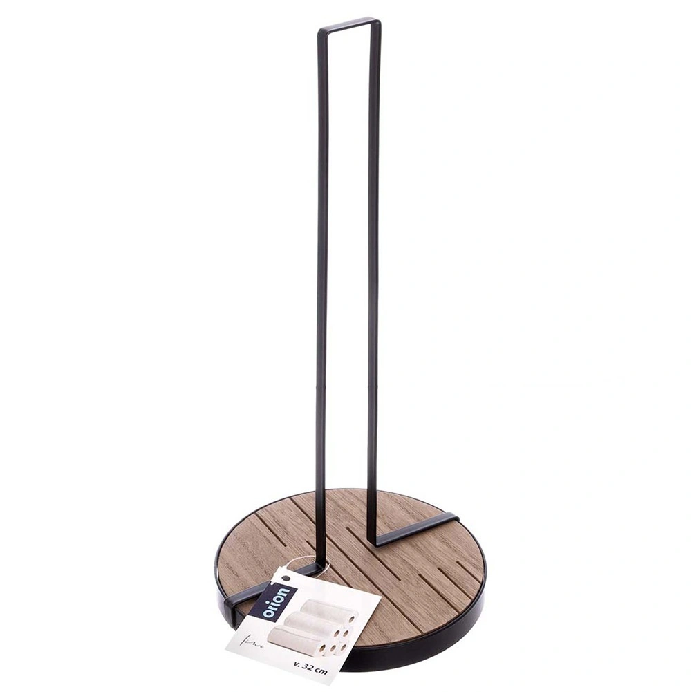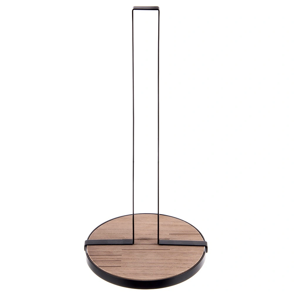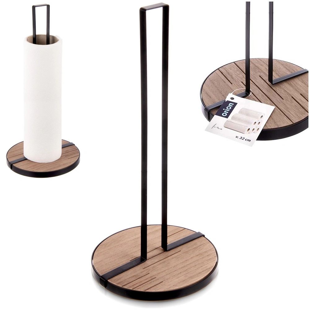 Suportul pentru prosoape de hârtie LINE, cu dimensiunile 15,5 × 15,5 × 32,5 cm, este un ajutor practic pentru gătitul și curățenia de zi cu zi. Structura metalică robustă, în culoare neagră și baza circulară din MDF asigură stabilitate excelentă și durabilitate îndelungată.