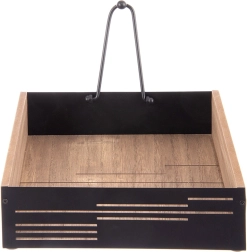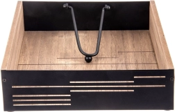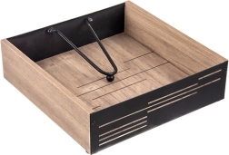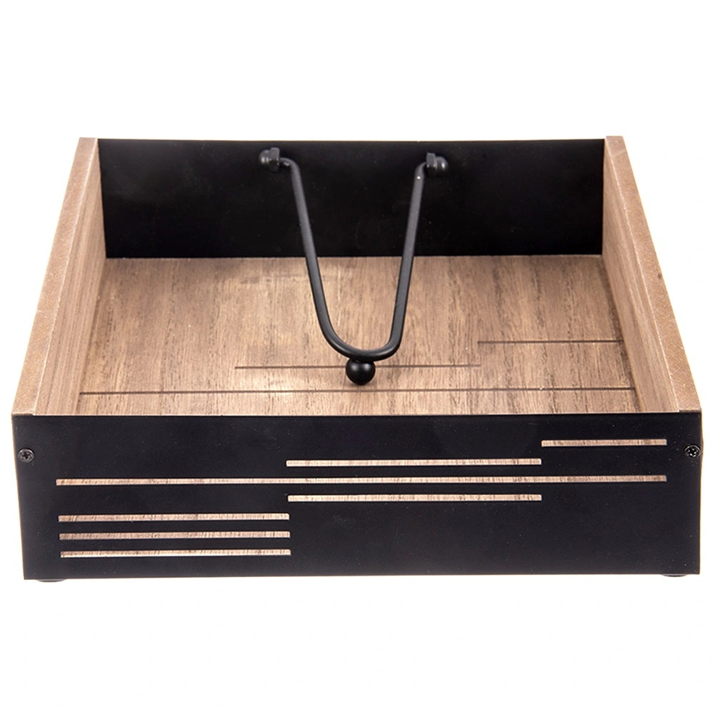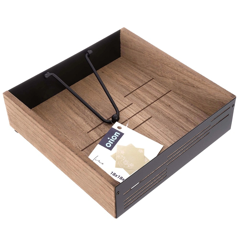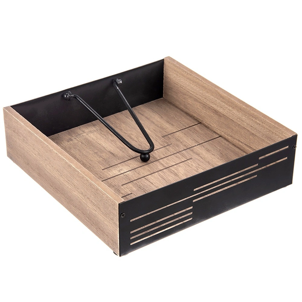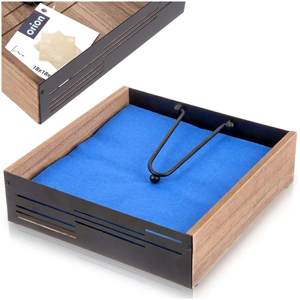 Suportul elegant pentru șervețele, cu braț de presiune, păstrează șervețelele în siguranță la locul lor, atât acasă, cât și în aer liber. Combinație de lemn și metal în stil industrial, dimensiuni 18 × 18 × 5 cm. Presiune stabilă, materiale rezistente și preluare ușoară a șervețelelor îl fac un accesoriu practic pentru masă, grădină și domeniul HoReCa.