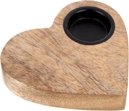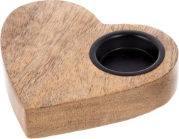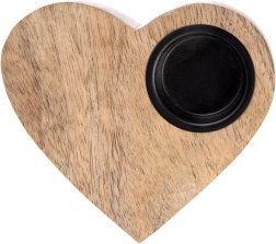 Suportul stilat pentru lumânare, în formă de inimă, din lemn natural de mango, oferă interiorului o atmosferă primitoare și o lumină romantică. Inserția metalică fixează în siguranță lumânarea tip tealight cu diametrul de până la 4 cm. Arată grozav pe comodă, masă sau pervaz și se potrivește ușor atât cu accesorii naturale, cât și metalice.