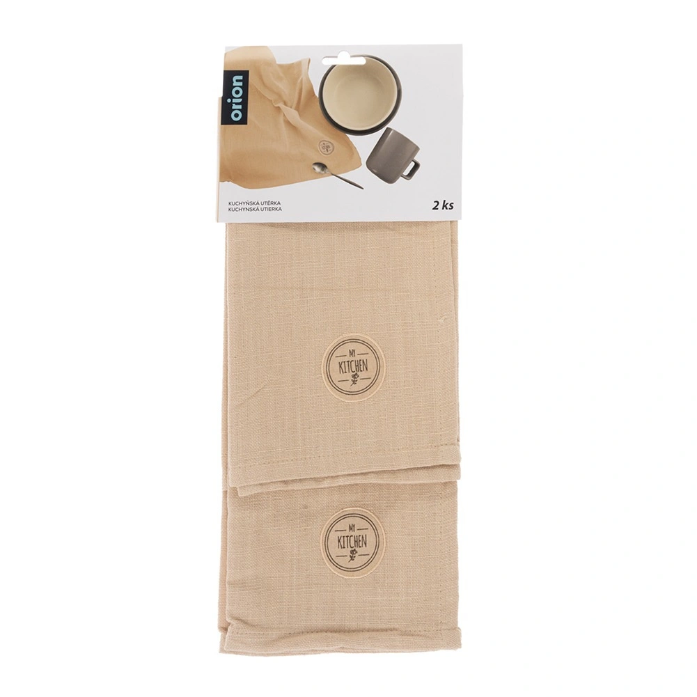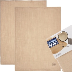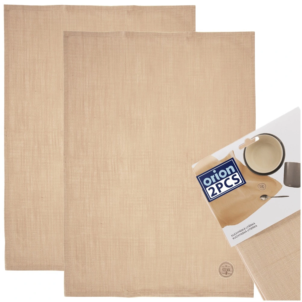 Setul de două prosoape de bucătărie bej, cu dimensiunile 70 × 50 cm, este ideal pentru utilizarea zilnică. 100% bumbac natural oferă o absorbție excelentă a umezelii și o senzație plăcută la atingere. Nuanța neutră se combină ușor cu diferite stiluri de bucătărie.