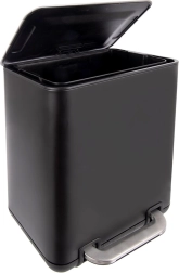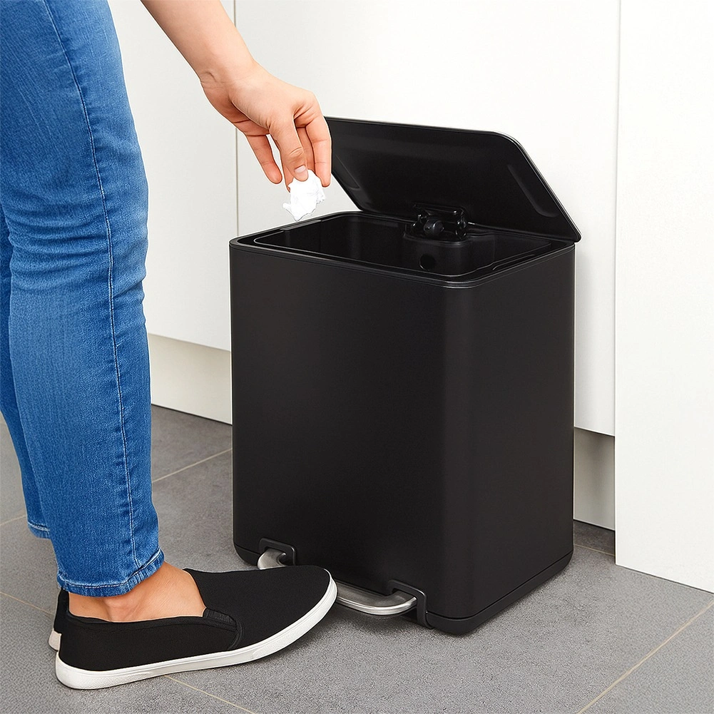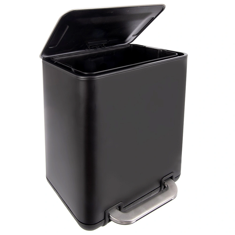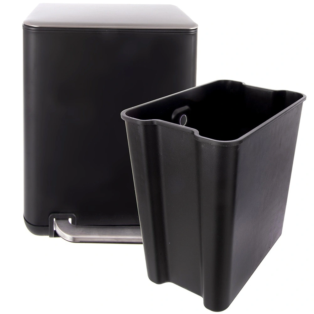 Coș de gunoi elegant și practic, cu capacitate de 20 l și deschidere cu pedală pentru utilizare igienică fără atingerea cu mâinile. Construcție din oțel inoxidabil cu finisaj negru mat, găleată interioară detașabilă pentru golire și curățare ușoară. Potrivit pentru bucătărie, baie și birou.