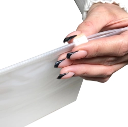 Suprafața semitransparentă, mată, păstrează intimitatea, dar permite în același timp o verificare vizuală rapidă a conținutului. Ideală pentru cosmetice, articole de toaletă sau mărunțișuri.