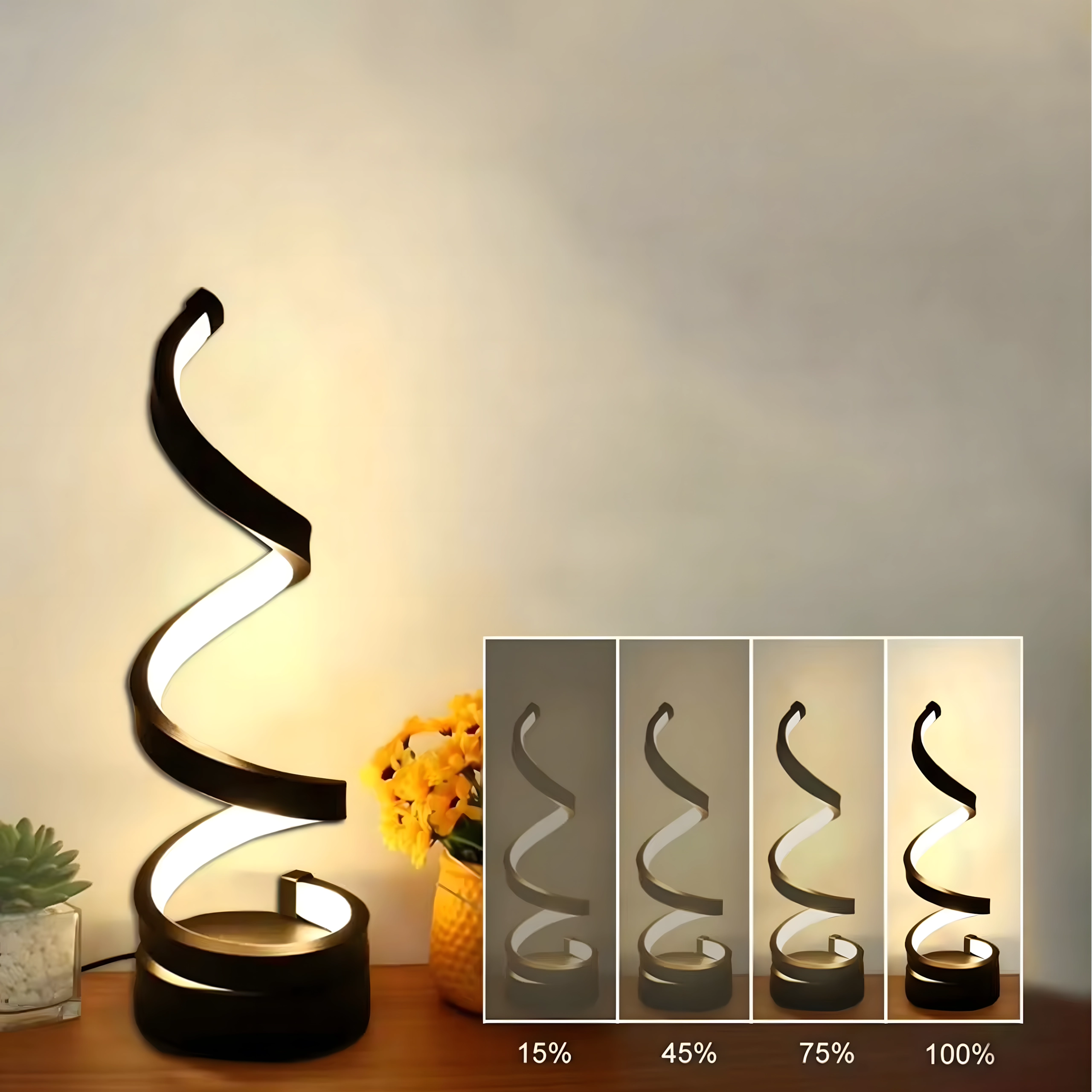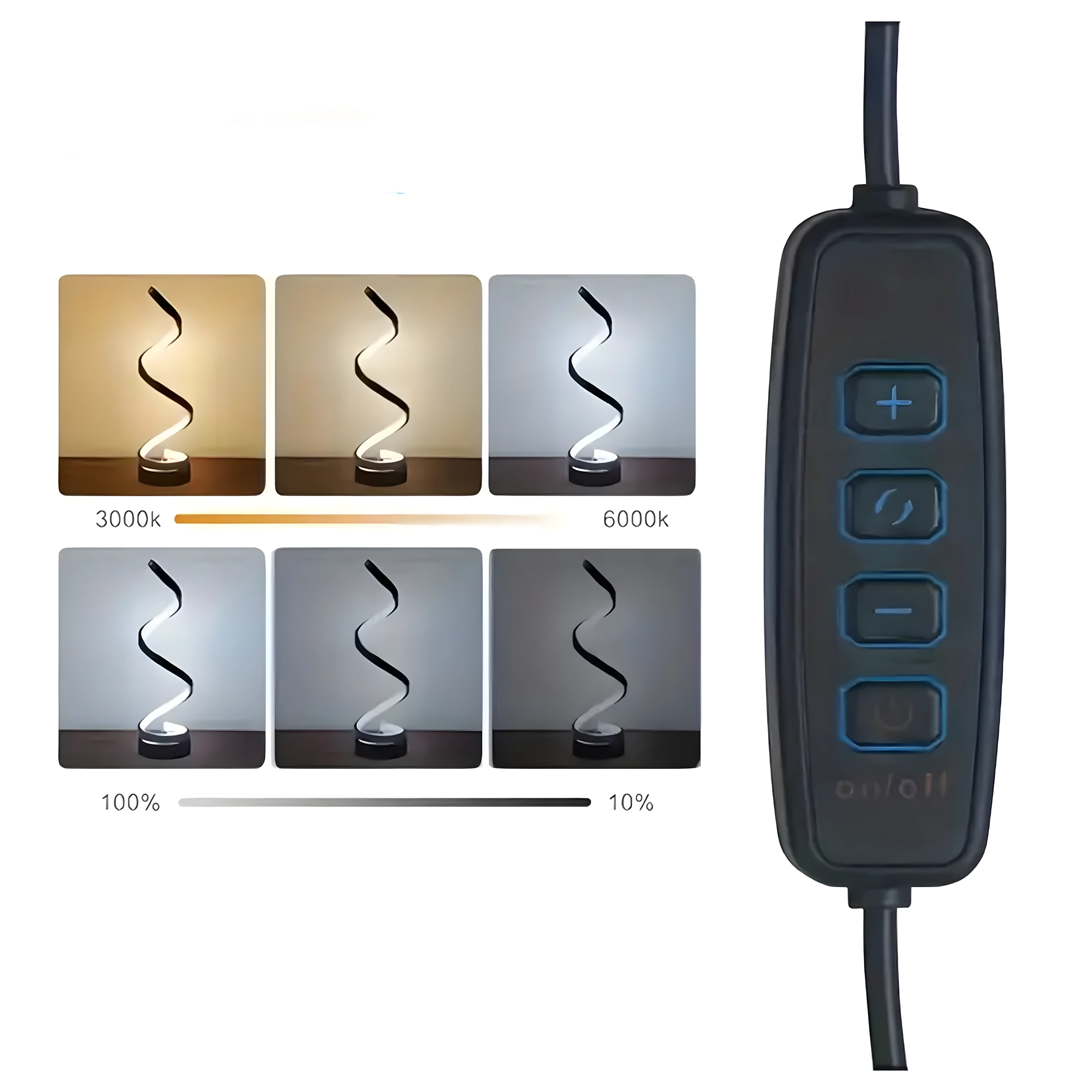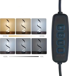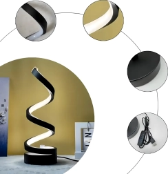 Descoperă combinația dintre minimalism și atmosferă. Lampa de birou LED spiralată, cu corp negru suplu și bandă luminoasă integrată, oferă lumină plăcută, neorbitoare pentru relaxare, lectură și confortul serii. Datorită bazei compacte, încape pe orice noptieră sau poliță.