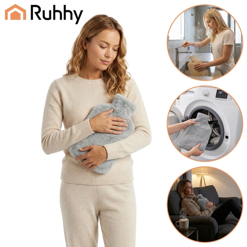 Învelește-te în căldură plăcută ori de câte ori ai nevoie. Termoforul mare din cauciuc RUHHY cu volum de 1,8 l și husă moale din pluș gri este un ajutor dovedit împotriva frigului, tensiunii musculare și durerilor abdominale. Oferă confort cald de lungă durată acasă pe canapea sau în pat și, datorită husei, este blând cu pielea.