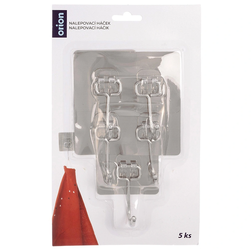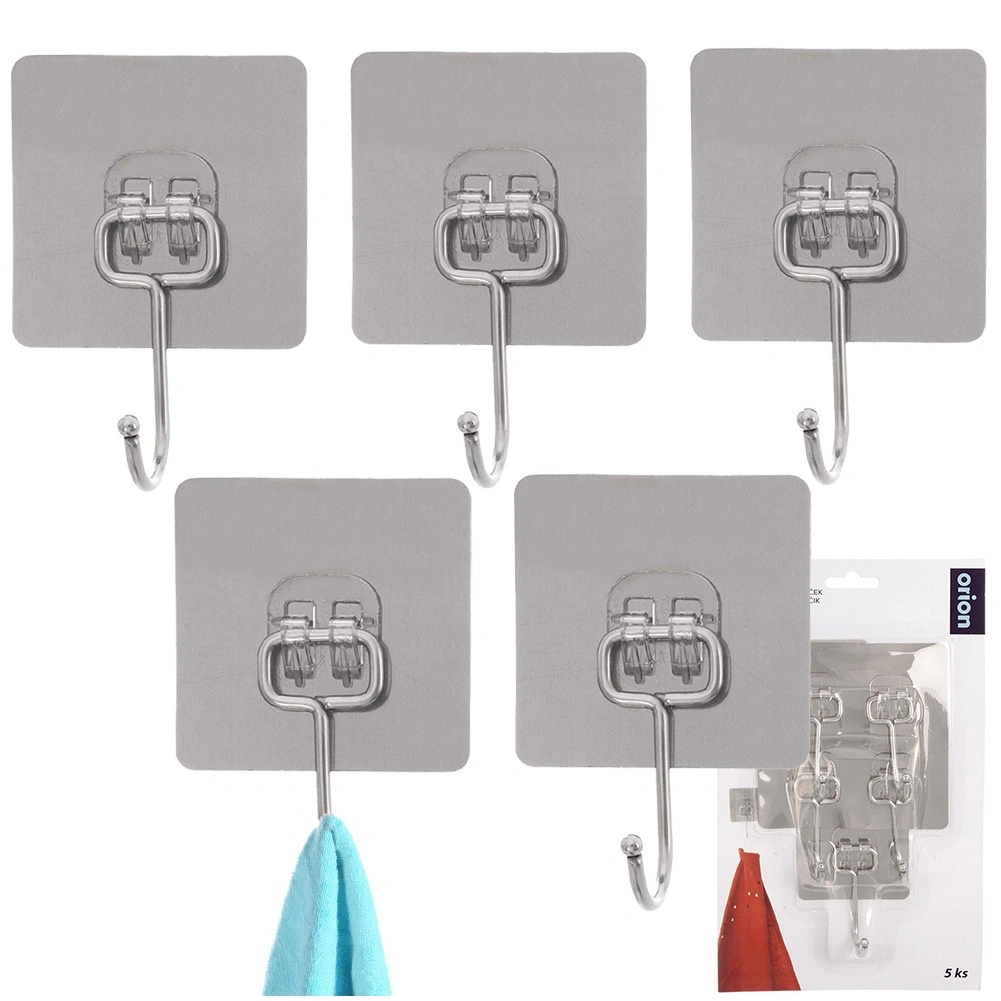 Set practic de cinci cârlige autoadezive pentru orice gospodărie. Datorită aderenței puternice se prind ferm pe suprafețe netede fără a fi nevoie de găurire. Fabricate din oțel inoxidabil durabil, ideale pentru bucătărie și baie, pentru prosoape, lavete, halate sau chei. Instalare simplă – degresare, presare și gata.