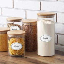 Designul alb elegant oferă un aspect curat și ordonat – borcanele devin și un element decorativ al locuinței. Etichetele pot fi folosite și la ambalarea cadourilor sau la sortarea obiectelor din gospodărie.