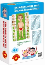 Jocul Școala - Construiește corpul uman este un joc educativ excelent care ajută copiii să învețe jucându-se părțile corpului. Conține carduri puzzle care permit copiilor să identifice și să denumească părți precum mână, ochi, nas și altele. Fiecare card are o formă unică, astfel încât se potrivește doar în locul corect.