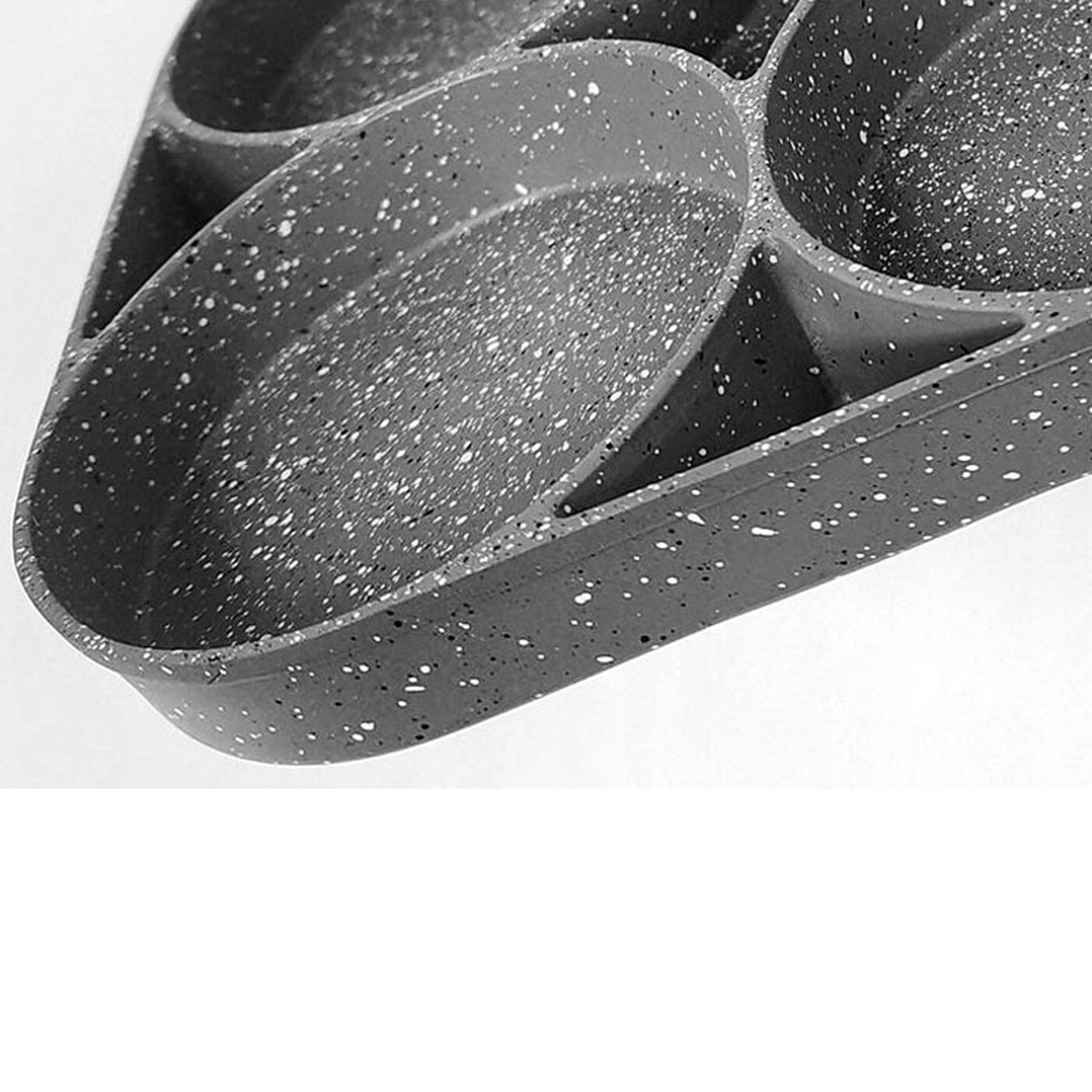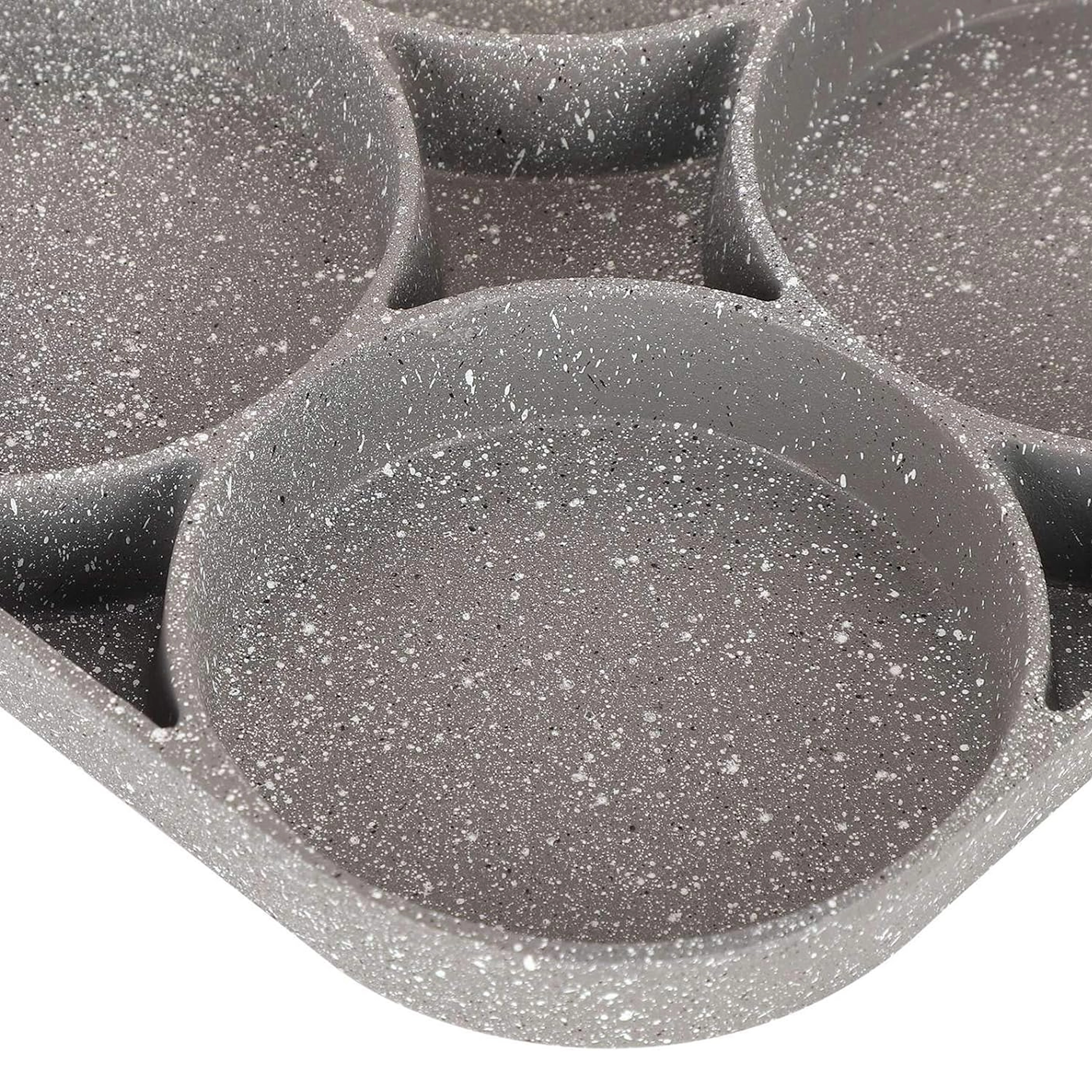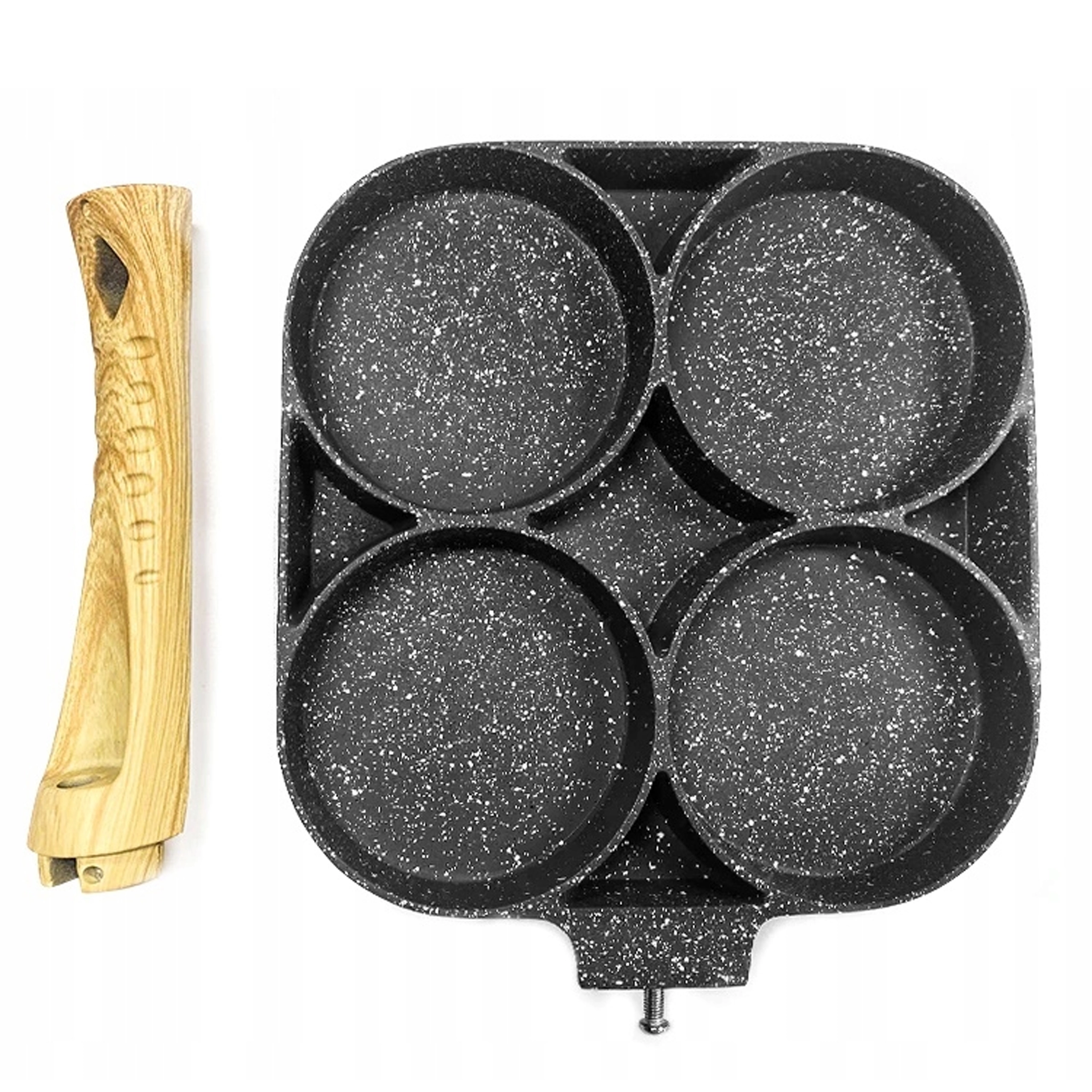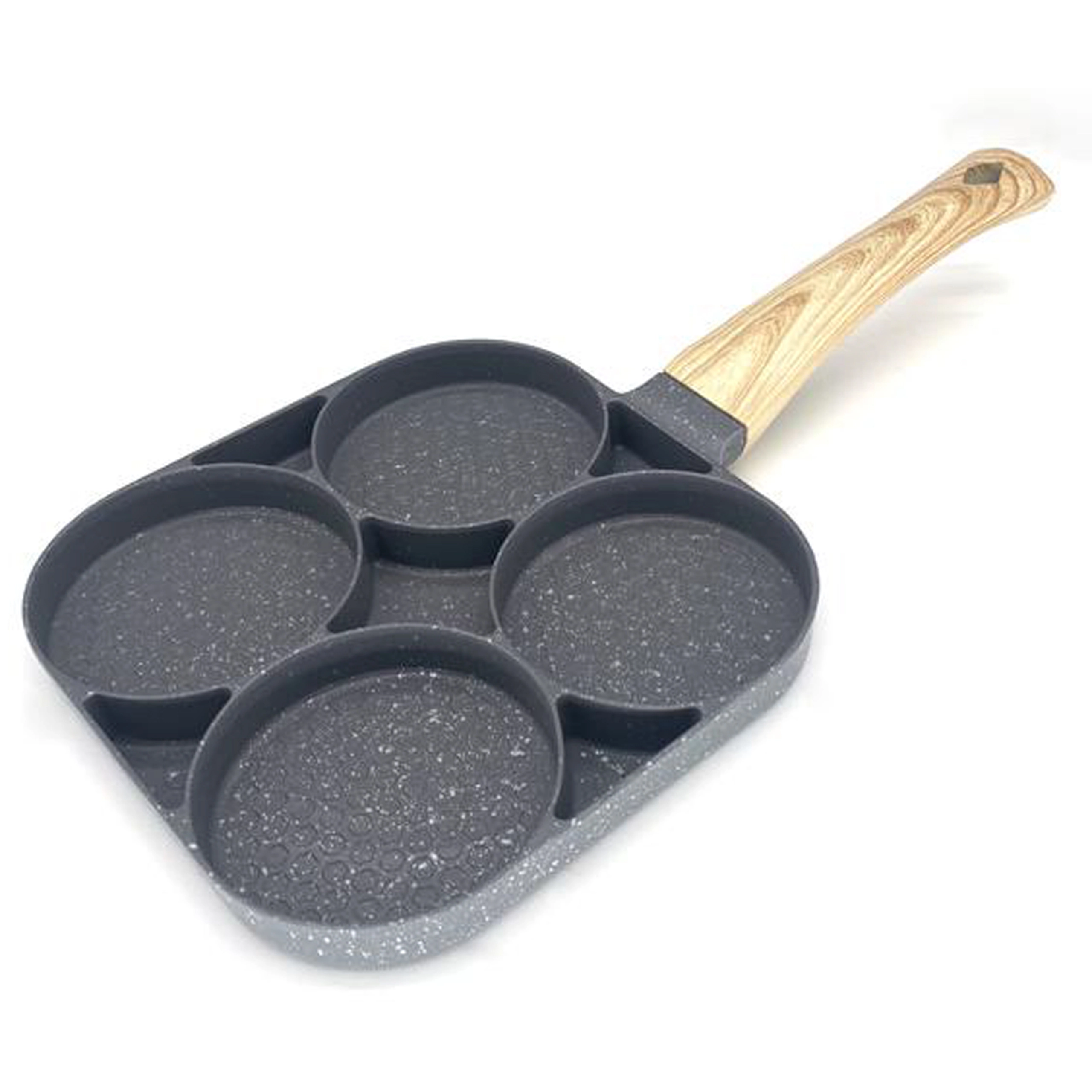 Pregătește micul dejun mai rapid și fără dezordine cu această tigaie versatilă cu patru camere rotunde. Datorită stratului antiaderent și distribuției uniforme a căldurii, vei găti ouă, clătite americane, turte și mini clătite perfect formate, simultan. Mânerul ergonomic cu aspect de lemn este plăcut la priză, iar tigaia este potrivită pentru inducție, gaz și alte tipuri de plite.