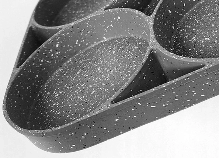 Suprafața punctată, cu aspect de piatră, previne lipirea și facilitează întoarcerea și curățarea.