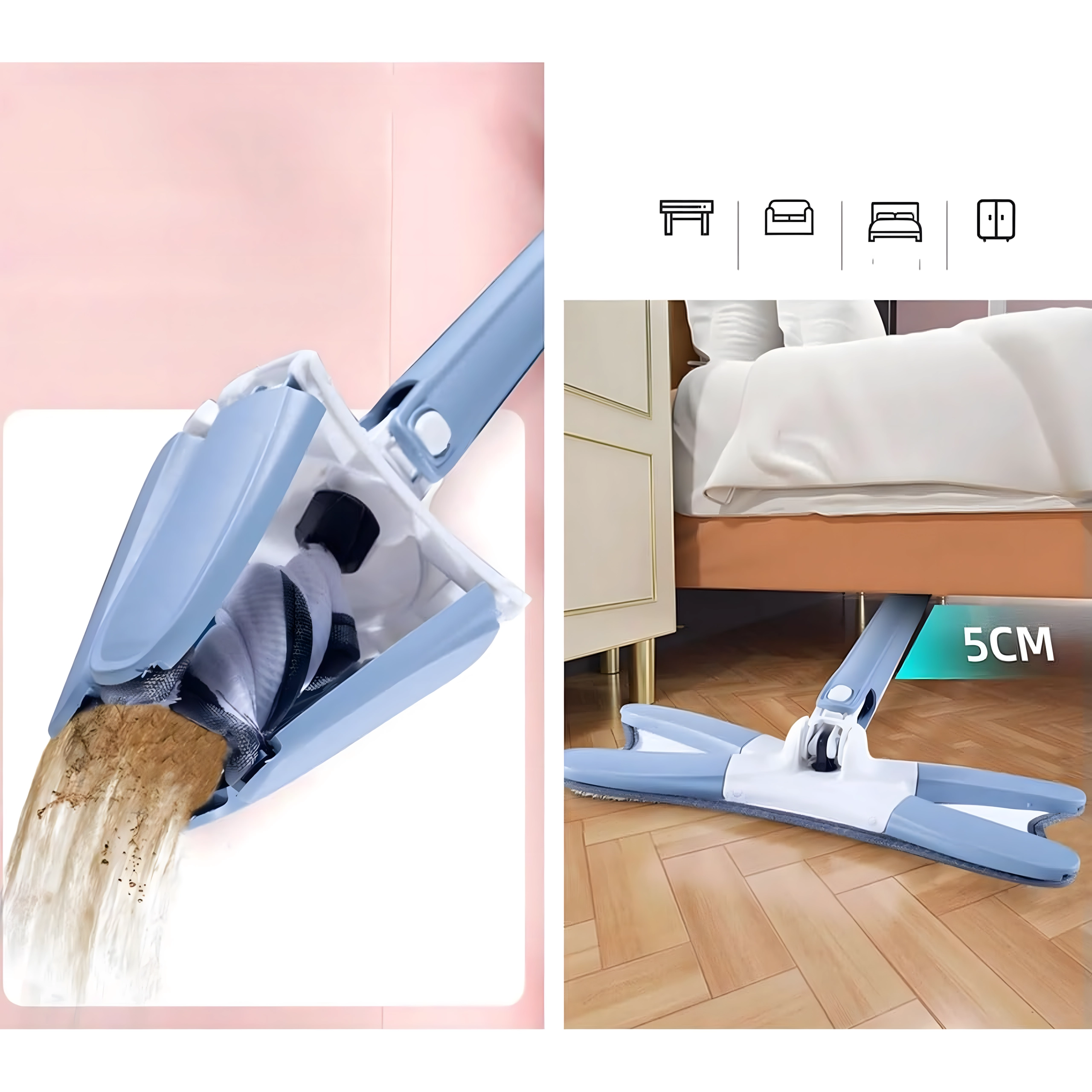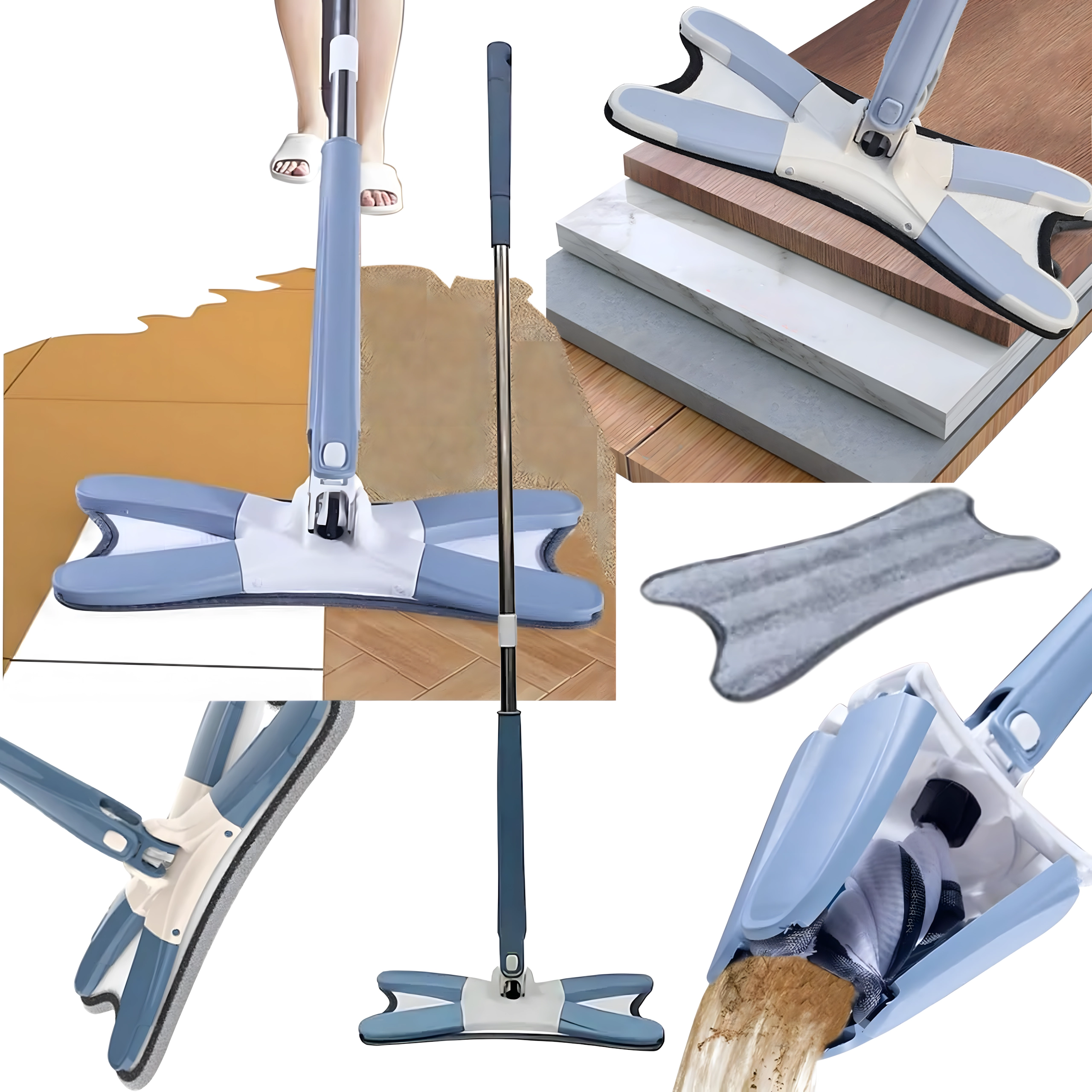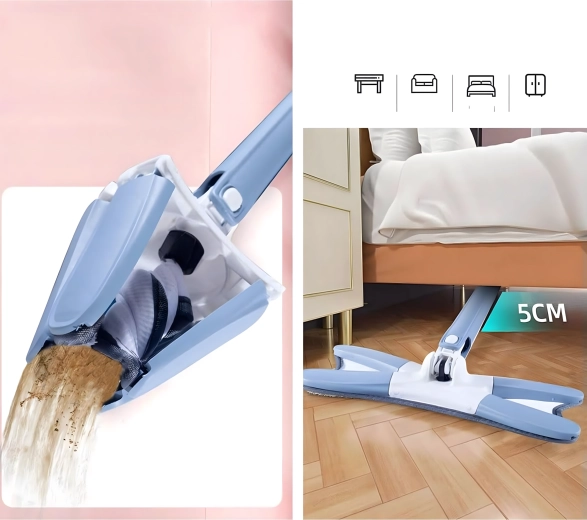 - Mop plat cu cap pliabil tip X și mecanism de stoarcere