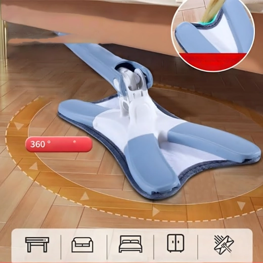 Mop plat practic cu cap rotativ și mecanism integrat pentru stoarcere ușoară, fără a uda mâinile. Datorită capului lat și microfibrei, colectează eficient praful și murdăria de pe toate podelele dure. Include husă de rezervă, construcție pliabilă în X și coadă telescopică pentru curățenie comodă în colțuri și sub mobilier.