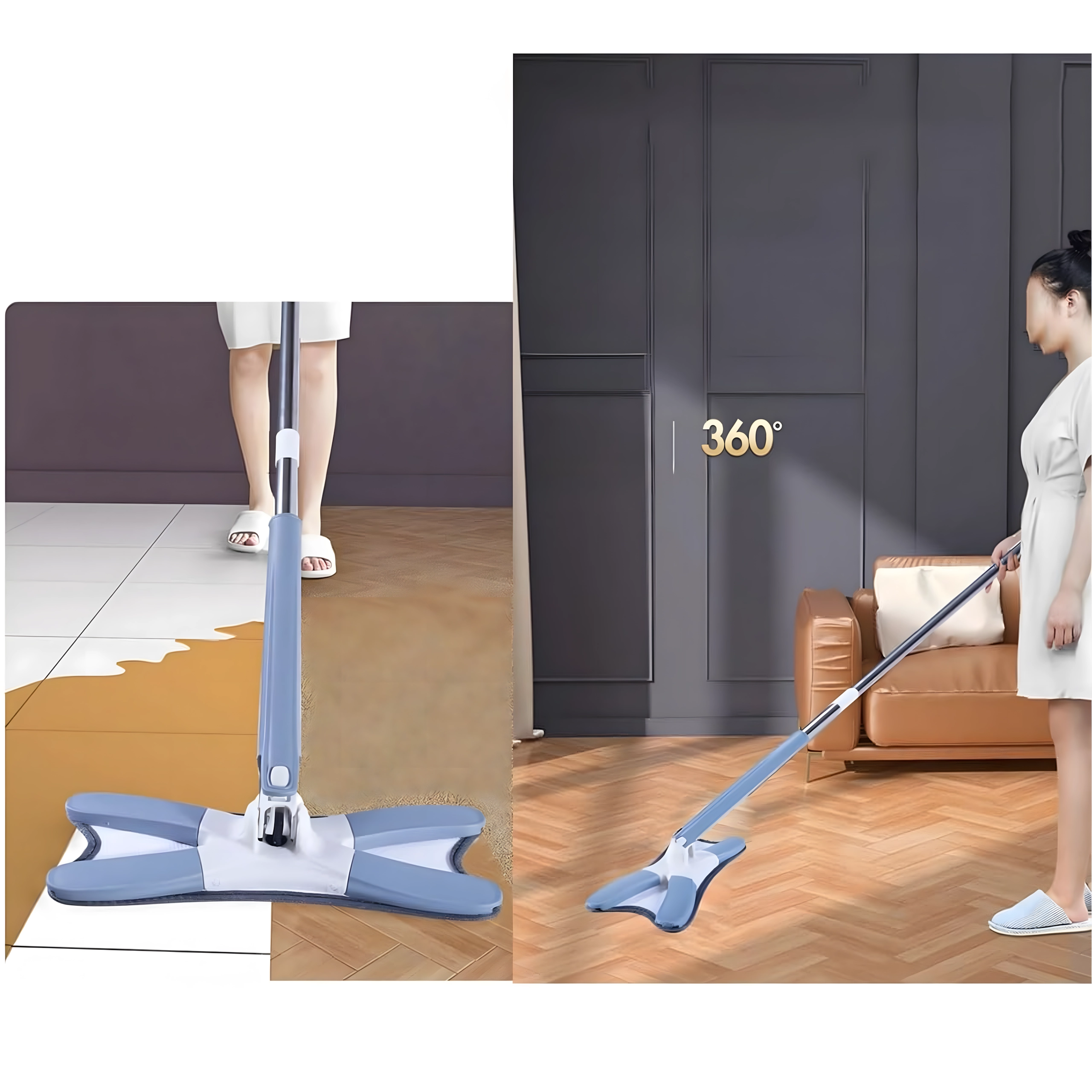 Datorită construcției pliabile în X, mopul ajunge ușor în colțuri, sub mobilierul jos și în jurul picioarelor meselor. Coada ușoară, ergonomică și reglabilă pe înălțime asigură utilizare confortabilă fără a vă apleca inutil spatele. În pachet găsiți și o husă de microfibră de rezervă pentru o durată de viață mai lungă și o curățenie igienică.