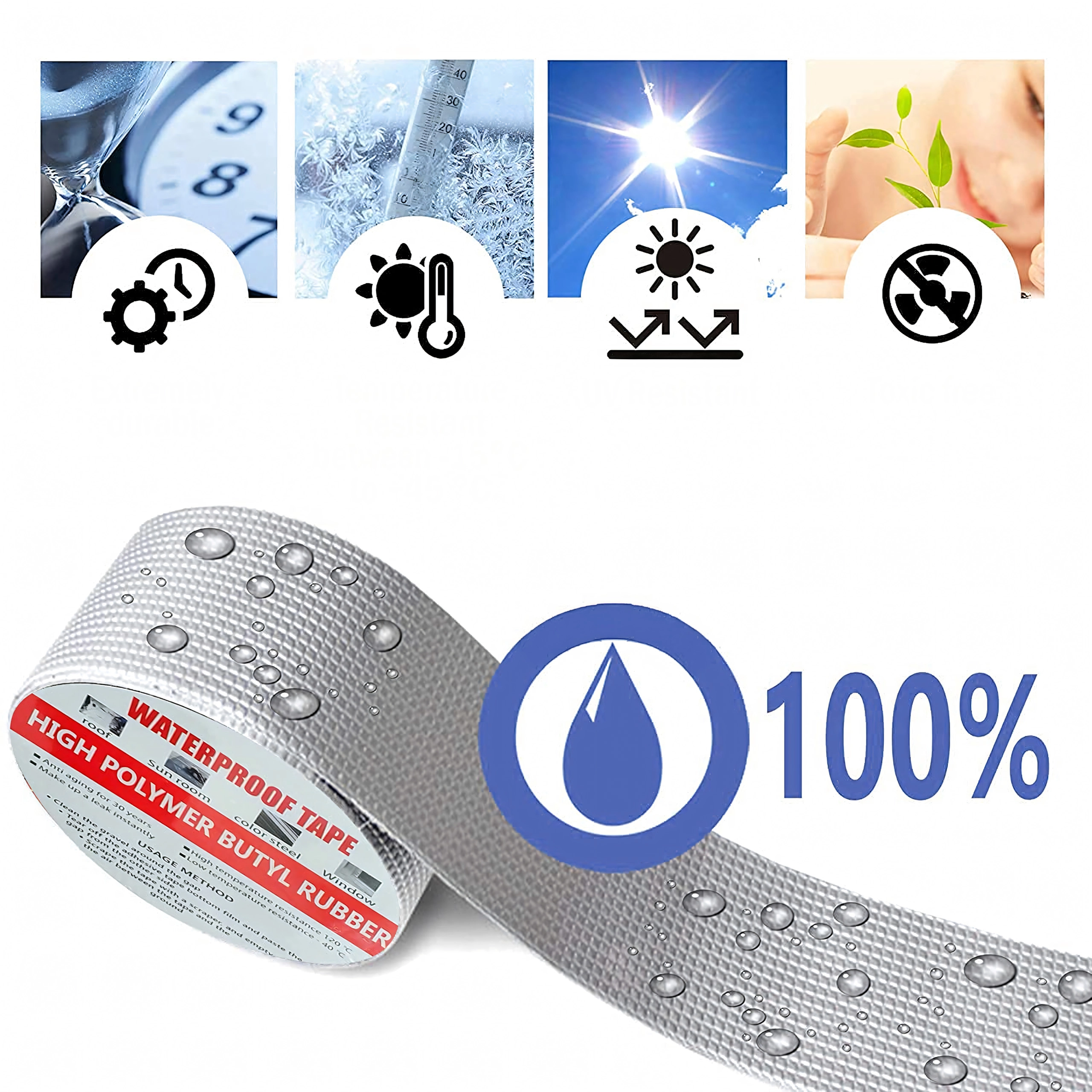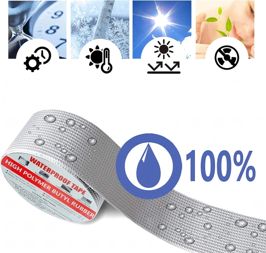Stratul de aluminiu protejează împotriva radiațiilor UV și a variațiilor de temperatură, astfel banda rezistă la ploaie, îngheț și căldură fără pierderea etanșeității.
