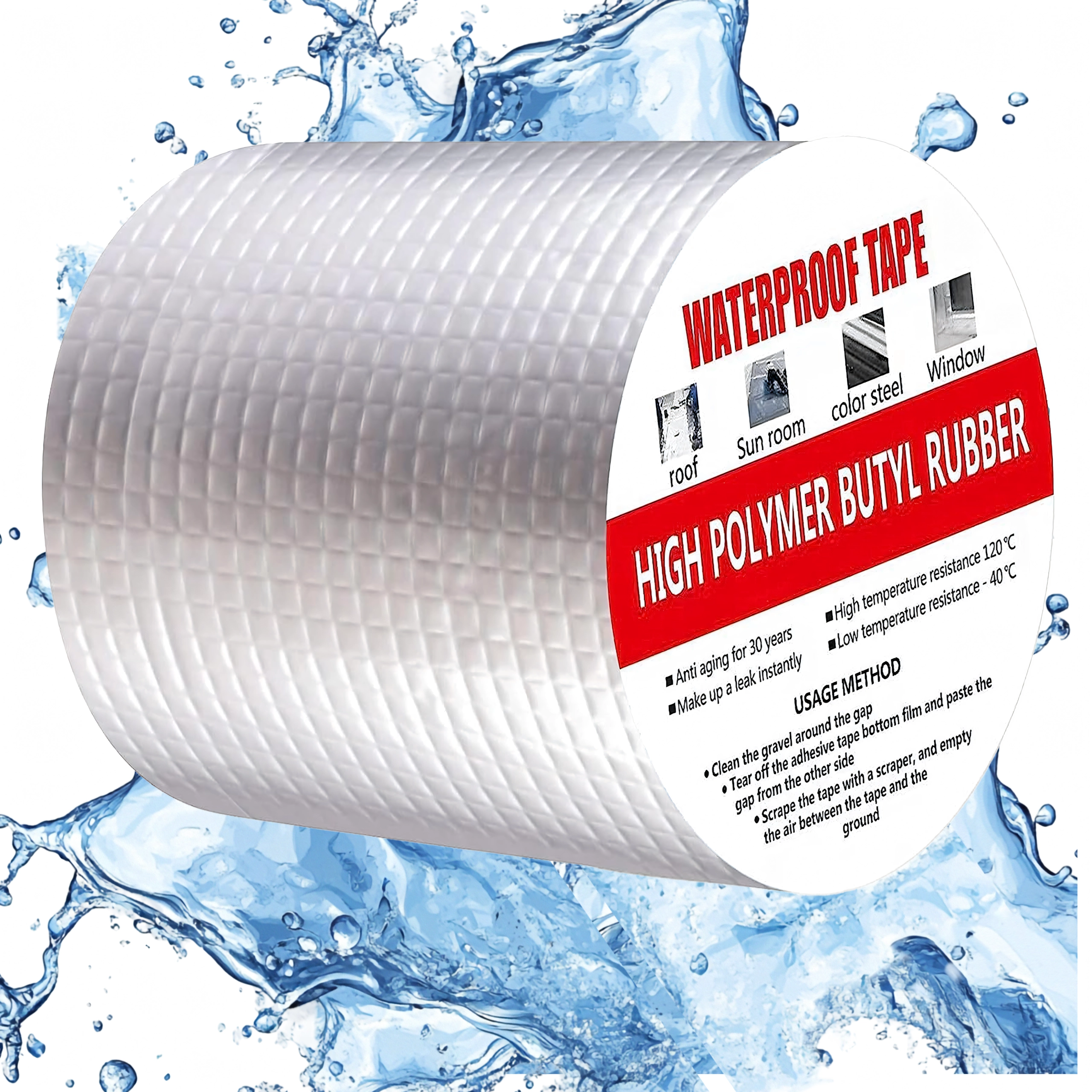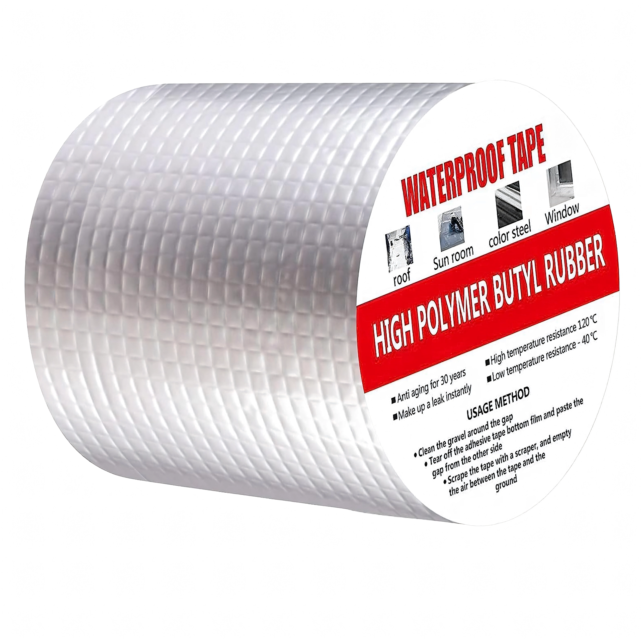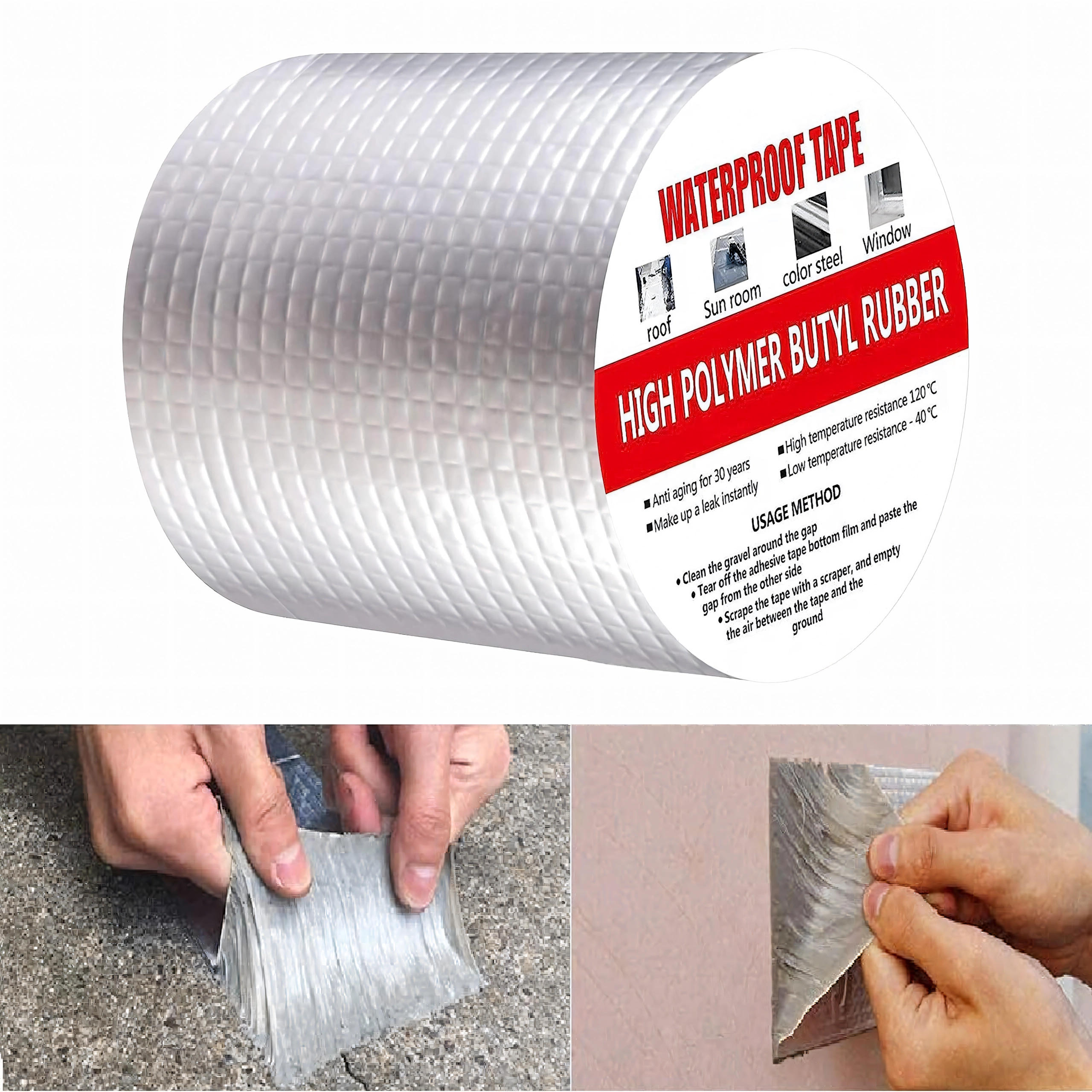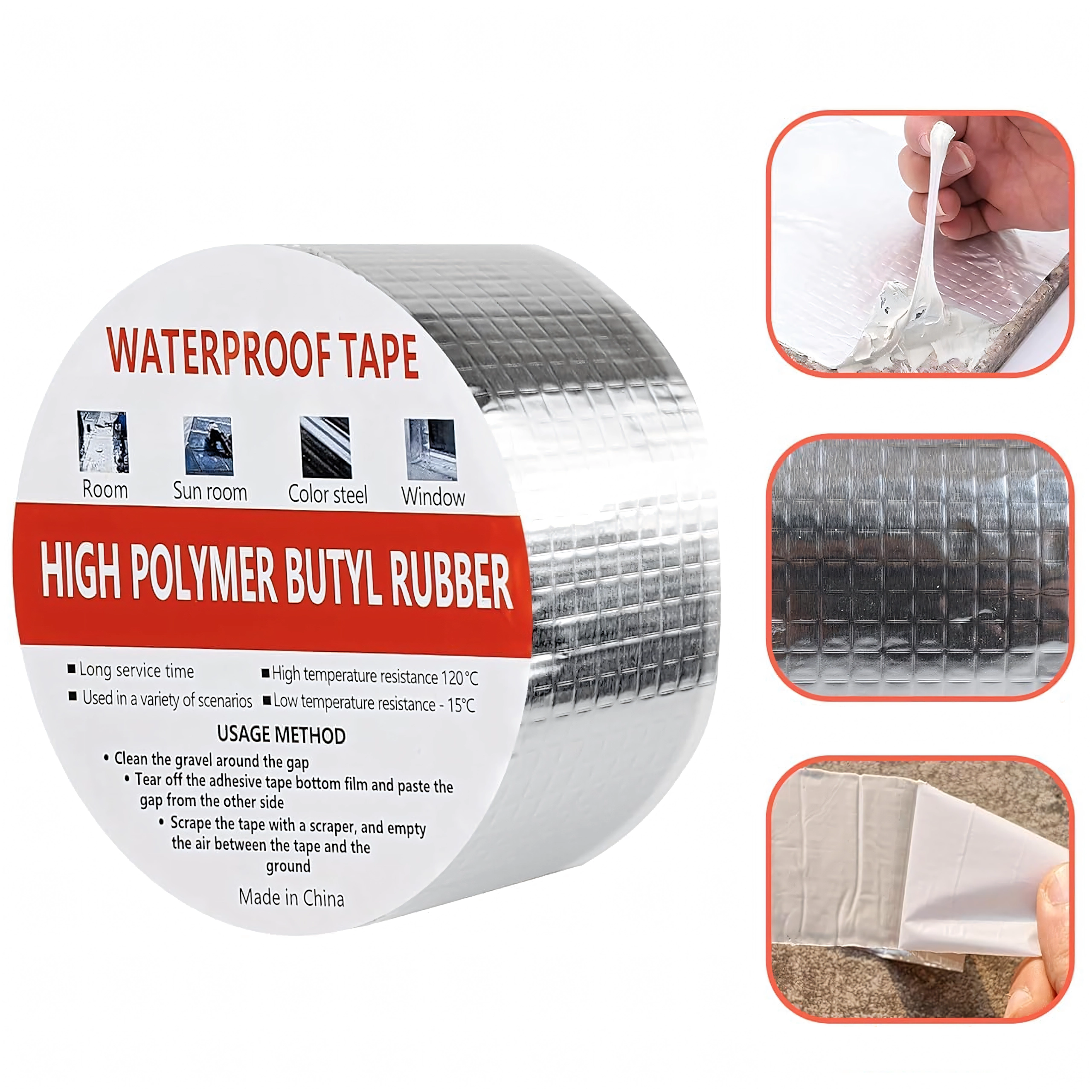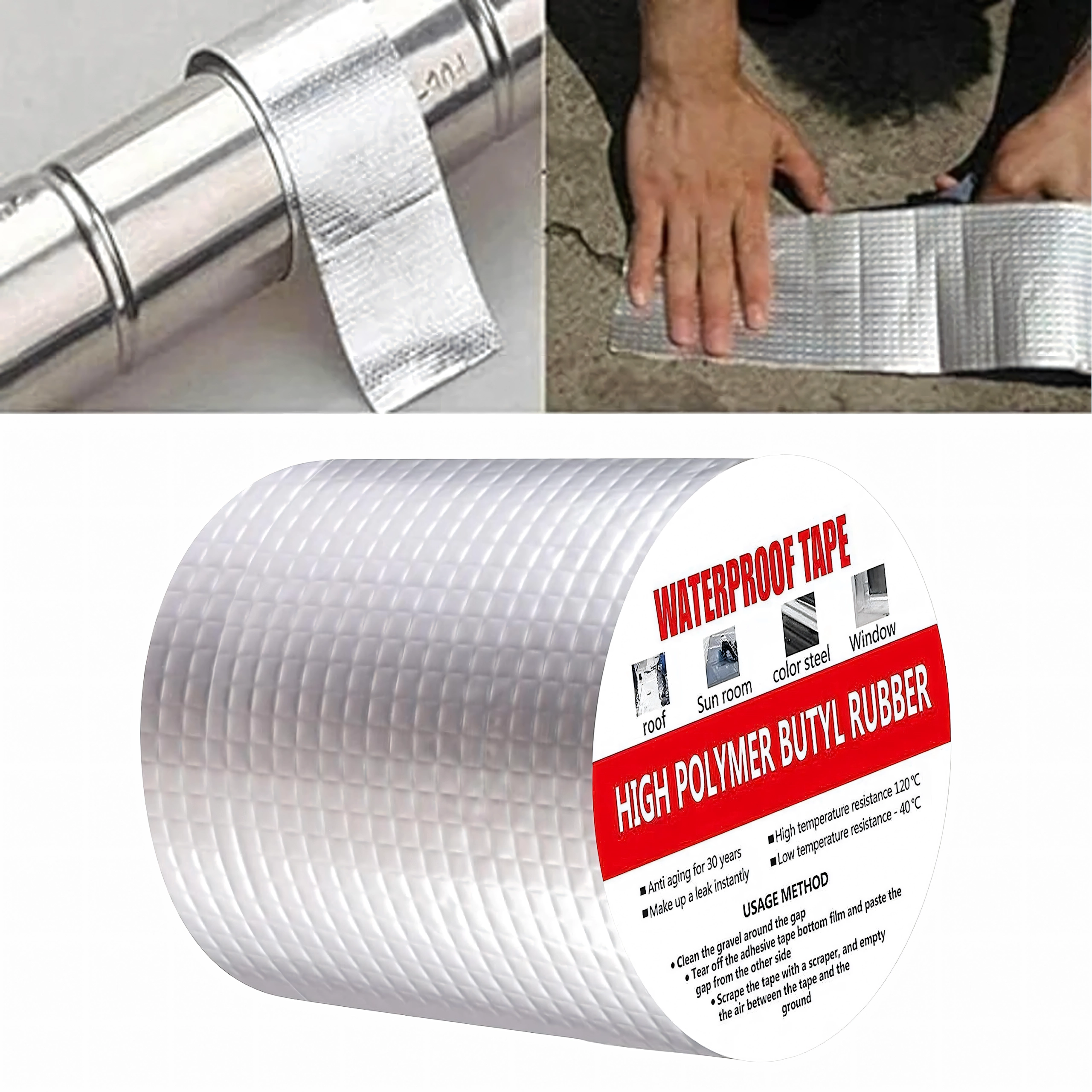 Este excelentă pentru acoperișuri, coșuri de fum, ferestre, conducte, rulote, structuri metalice și alte locuri unde este necesară o etanșare rapidă și rezistentă. Stratificarea cu aluminiu sporește rezistența la UV, temperatură și intemperii, în timp ce miezul butilic asigură elasticitate de durată și etanșeitate.