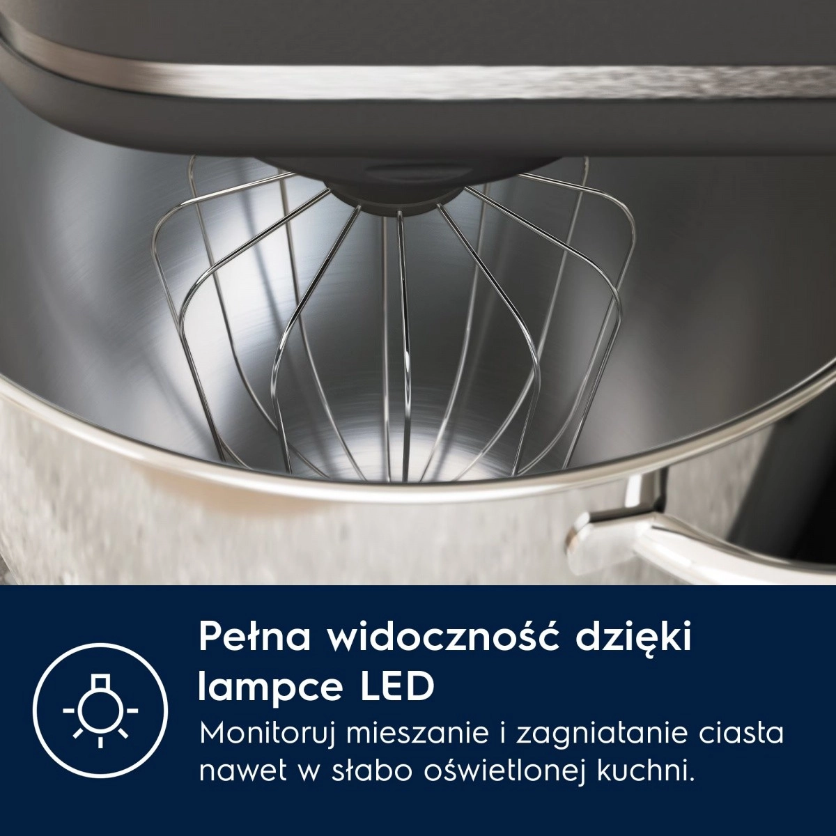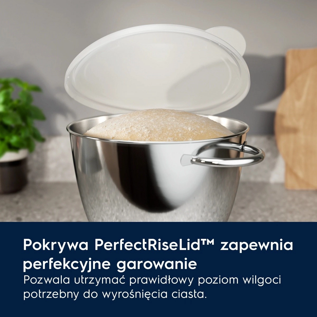 Mixarea planetară integrată încorporează uniform toate ingredientele și accelerează pregătirea aluatului cu până la 20%. Datorită iluminării LED aveți control perfect asupra consistenței compoziției chiar și în lumină slabă, iar capacul PerfectRiseLid asigură condiții ideale pentru dospire – circulație corectă a aerului și umiditate fără uscarea suprafeței.