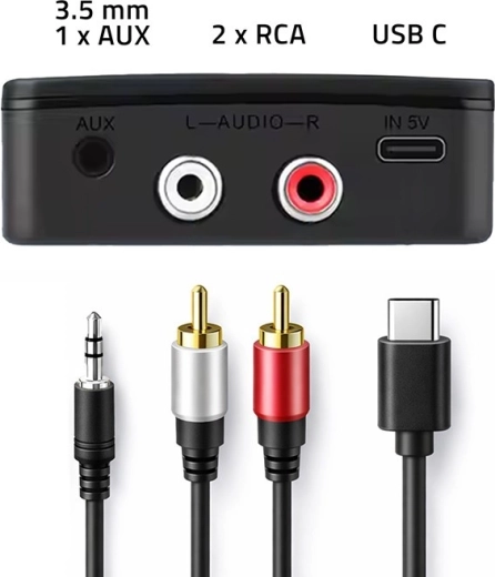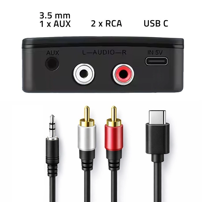Compatibilitate largă datorită ieșirilor 2× RCA și 3,5 mm AUX. Ideal pentru modernizarea sistemelor Hi‑Fi mai vechi, a amplificatoarelor și a autoradiourilor fără a înlocui echipamentele. Plug & Play înseamnă fără drivere – conectezi și folosești imediat.