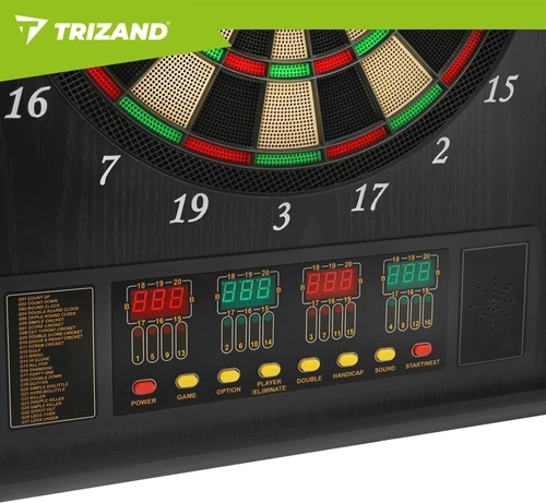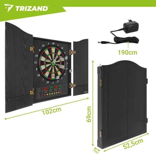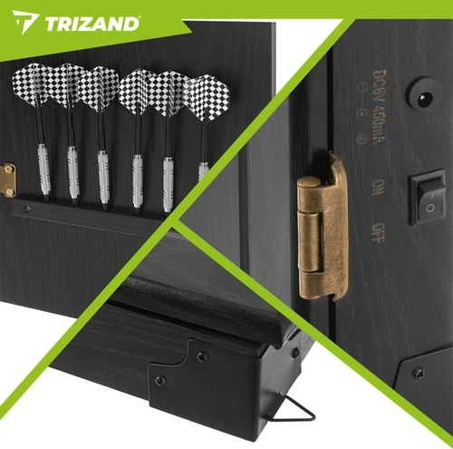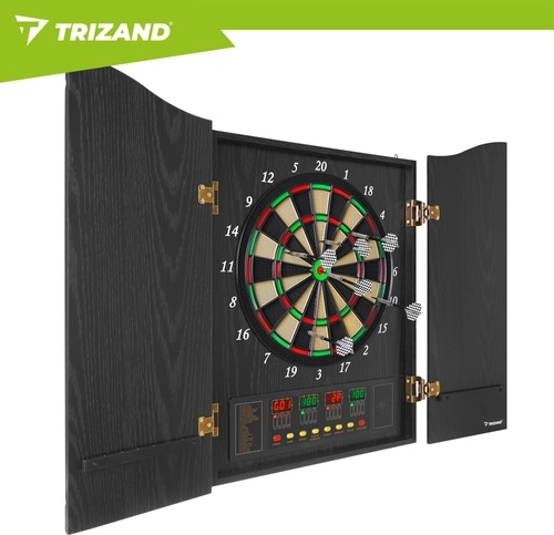 Ținta electronică de darts TRIZAND aduce divertisment modern acasă pentru familie și prieteni. Datorită unității de punctaj automate, reglajului volumului și afișajelor LED clare, ai rezultatele mereu sub control. Elegantul dulap cu uși protejează ținta de praf și se potrivește perfect în living, cameră de jocuri sau birou.