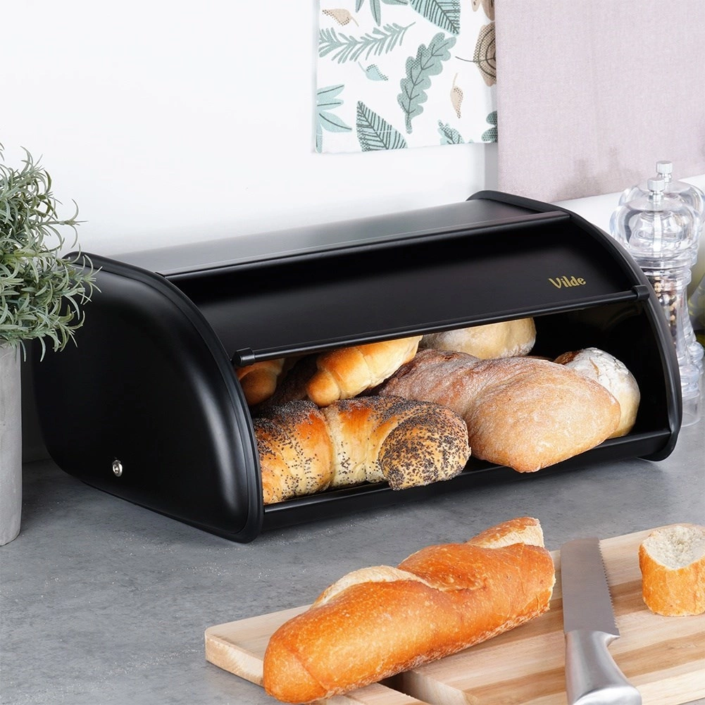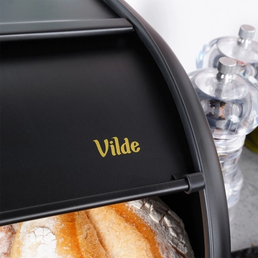 Cutia de pâine Vilde, elegantă și neagră, este fabricată din oțel inoxidabil lăcuit, care protejează în mod fiabil conținutul împotriva uscării și a prafului. Compartimentarea interioară spațioasă găzduiește pâine, chifle și produse de patiserie, păstrându-le mai mult timp aromate și gustoase. Finisajul mat și liniile rotunjite se combină ușor atât cu bucătării moderne, cât și clasice.
