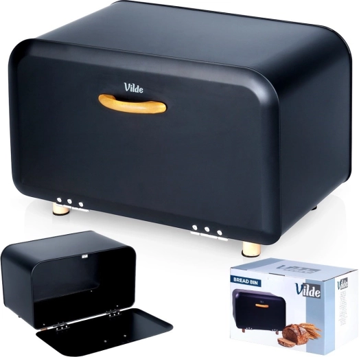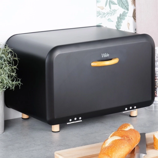 Păstrați produsele de panificație mai mult timp aromate și crocante. Cutia de pâine metalică Vilde, în nuanță elegantă de negru mat, limitează accesul aerului, ajutând la menținerea prospețimii și a gustului pâinilor și chiflelor. Datorită dimensiunilor compacte se potrivește pe blatul din bucătărie, oferind totodată spațiu generos pentru provizia zilnică.