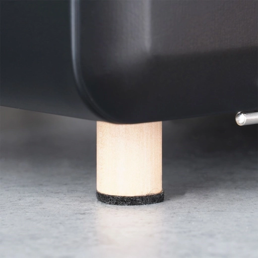 Ușa rabatabilă practică, cu mâner din lemn, asigură acces rapid și comod, iar cele patru picioare din lemn cu paduri din fetru oferă stabilitate și protecție pentru blat. Metalul vopsit în câmp electrostatic este rezistent la zgârieturi și ușor de curățat, fiind o alegere excelentă pentru bucătării moderne sau clasice.