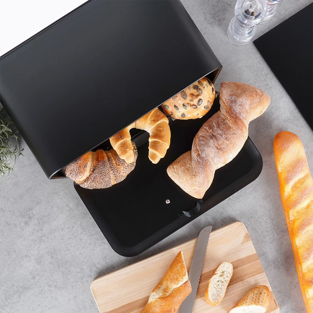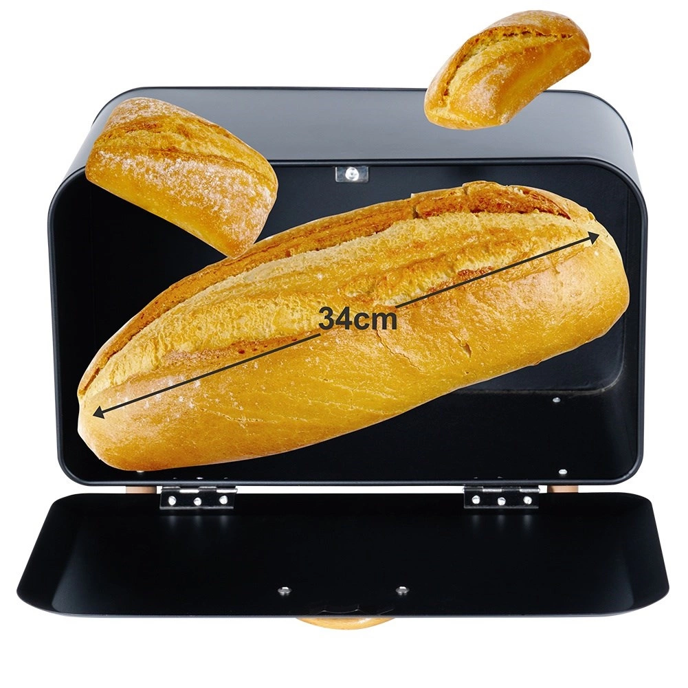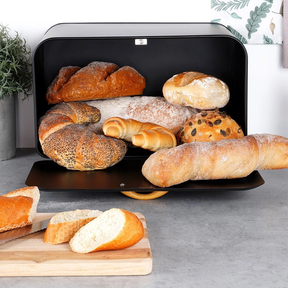 Corpul metalic de calitate, cu acces limitat al aerului, ajută la menținerea pâinii, chiflelor și produselor dulci de panificație mai fragede și gustoase pentru mai mult timp.