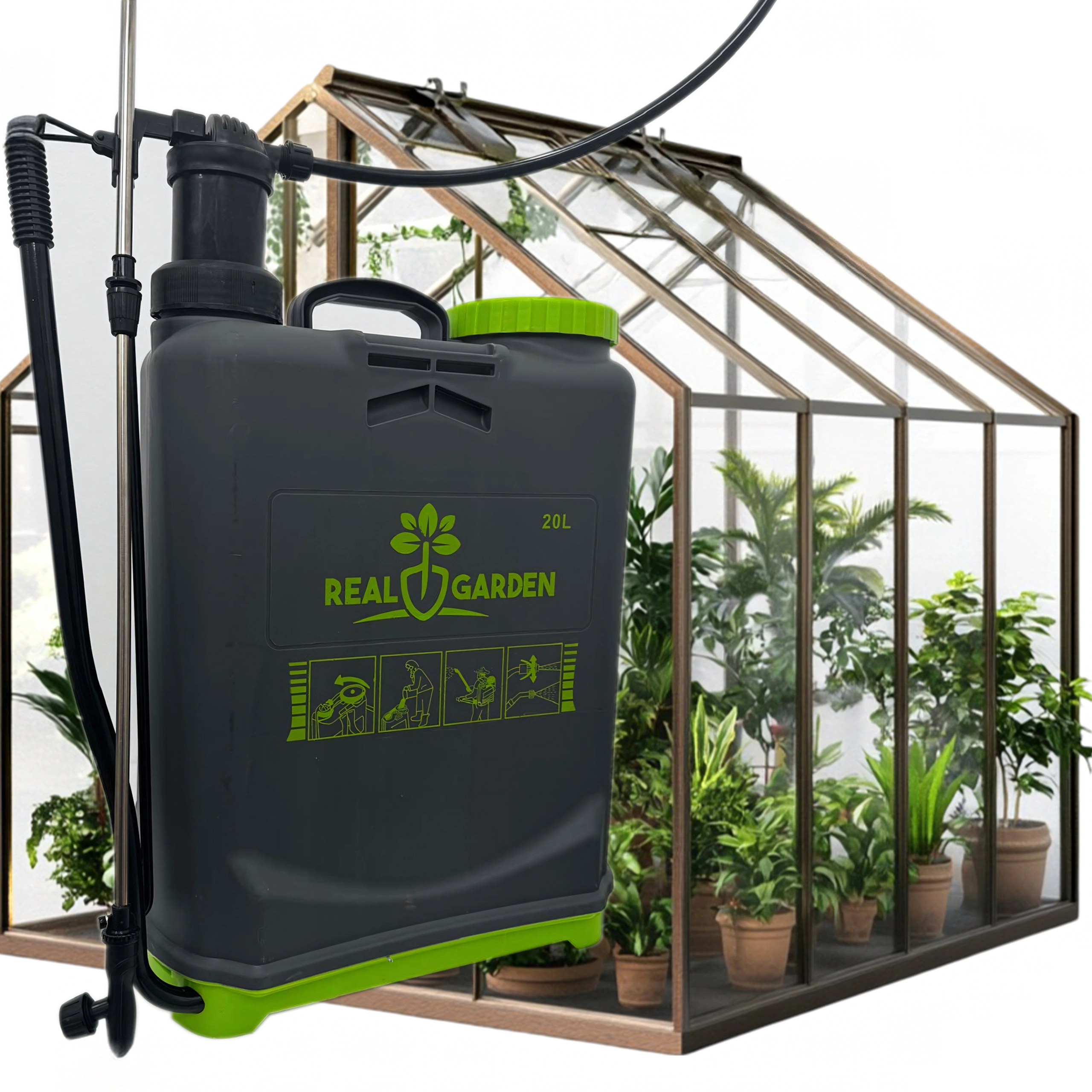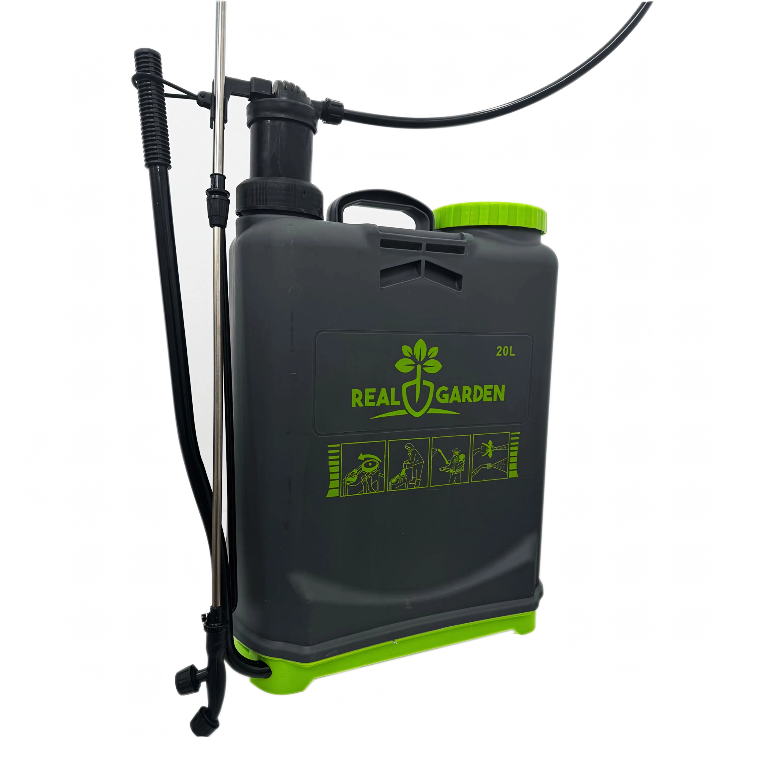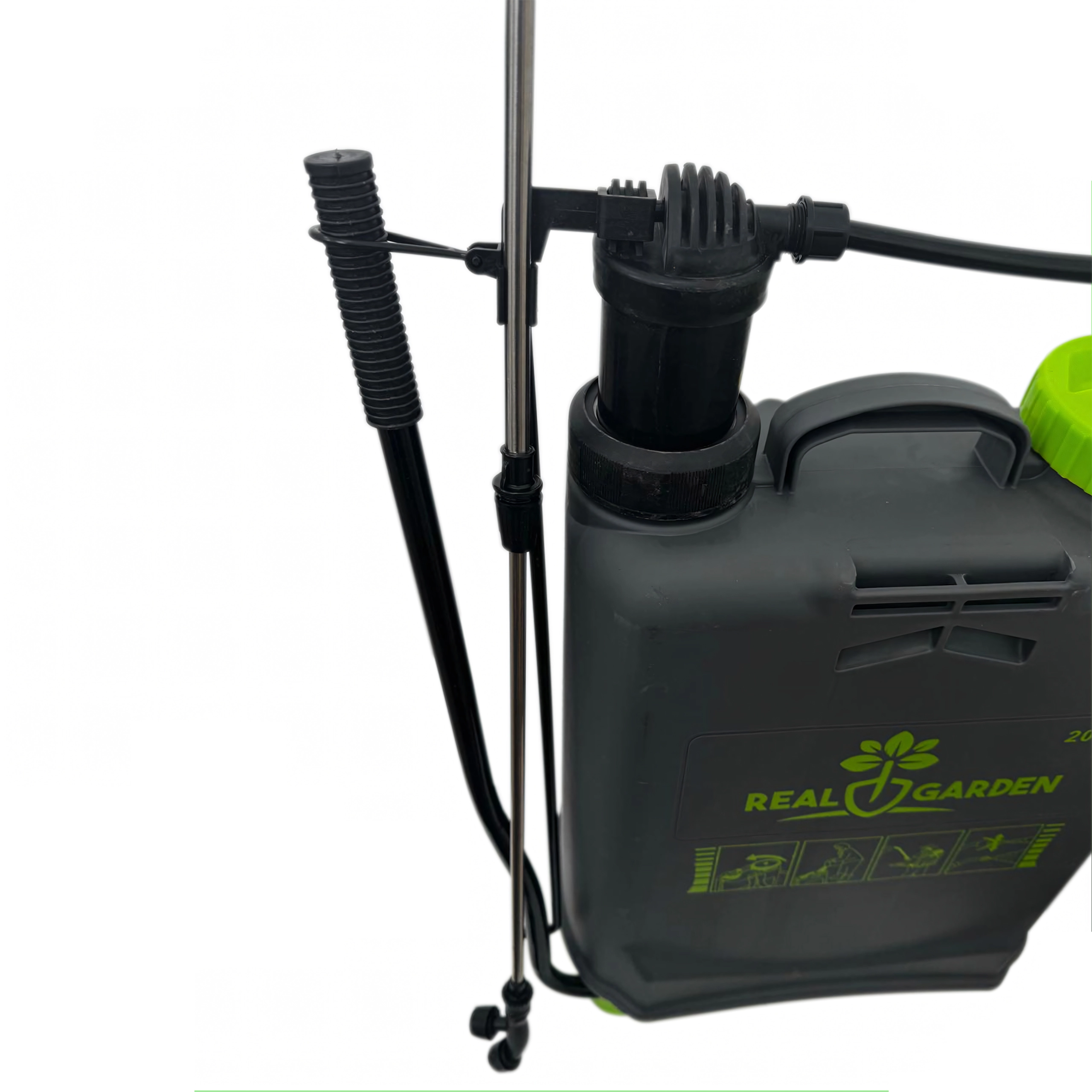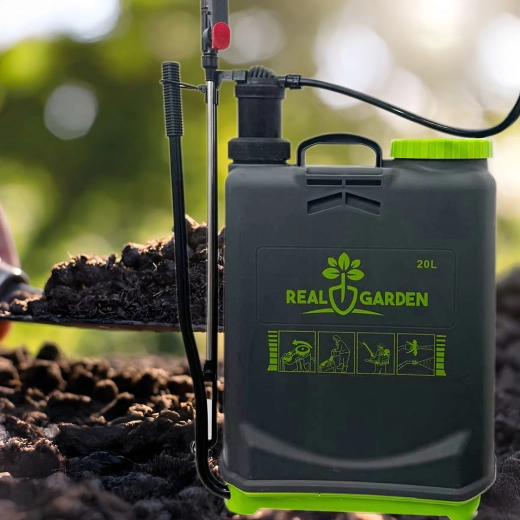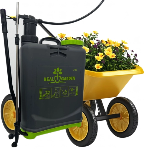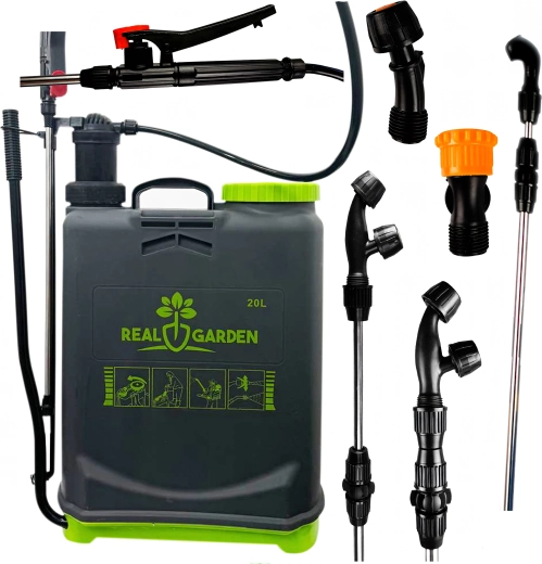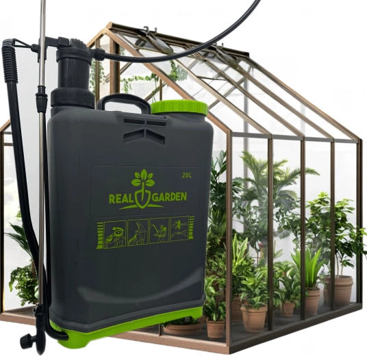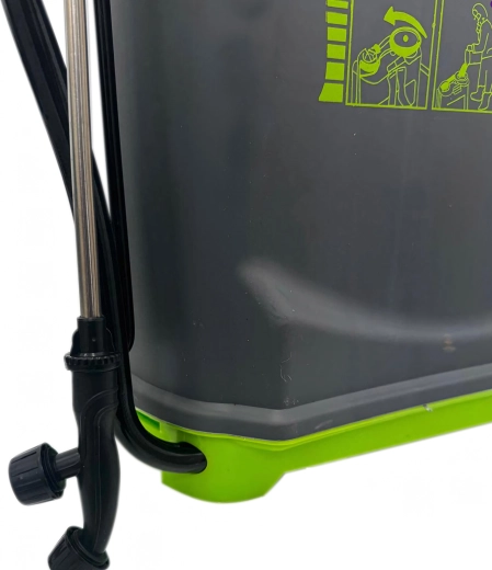 Sunt incluse mai multe duze interschimbabile pentru diferite tipuri de pulverizare – de la ceață fină la jet continuu. Bretelele confortabile distribuie sarcina pe spate, iar baza stabilă oferă siguranță la așezare. Ideal pentru sere, straturi, livezi și peluze.