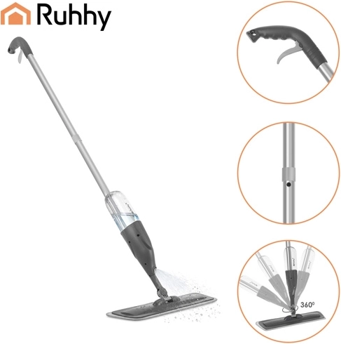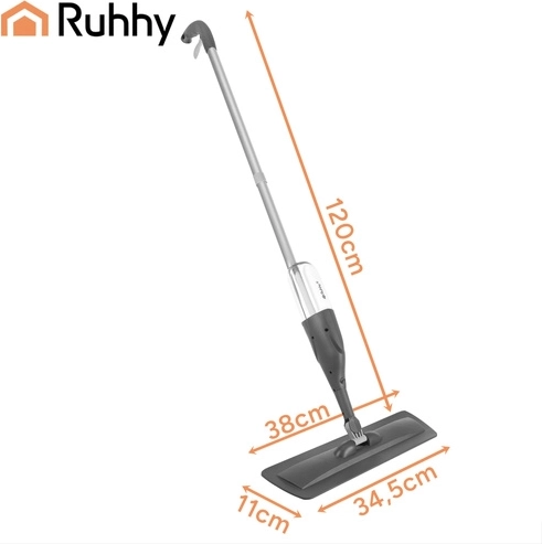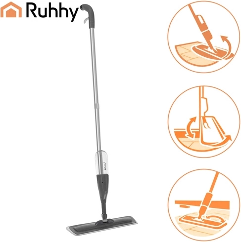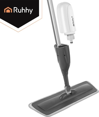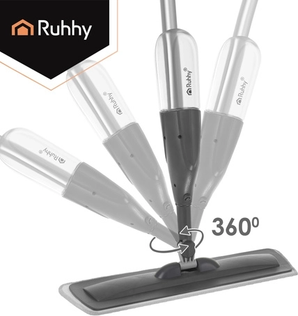 Mopul practic cu pulverizator RUHHY, cu rezervor integrat de 300 ml și cap rotativ la 360°, accelerează curățenia zilnică fără găleată. Construcția ergonomică ușoară, panoul de curățare lat și 3 huse lavabile asigură îndepărtarea eficientă a prafului, murdăriei și părului de pe diferite tipuri de pardoseli.