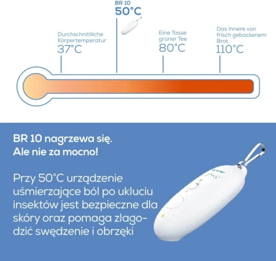 Beurer BR 10 este un dispozitiv medical destinat tratării înțepăturilor și mușcăturilor de insecte fără utilizarea chimicalelor – funcționează doar cu căldură locală sigură. Utilizarea simplă și rapidă ajută la reducerea senzațiilor neplăcute și a manifestărilor vizibile ale iritației pielii.